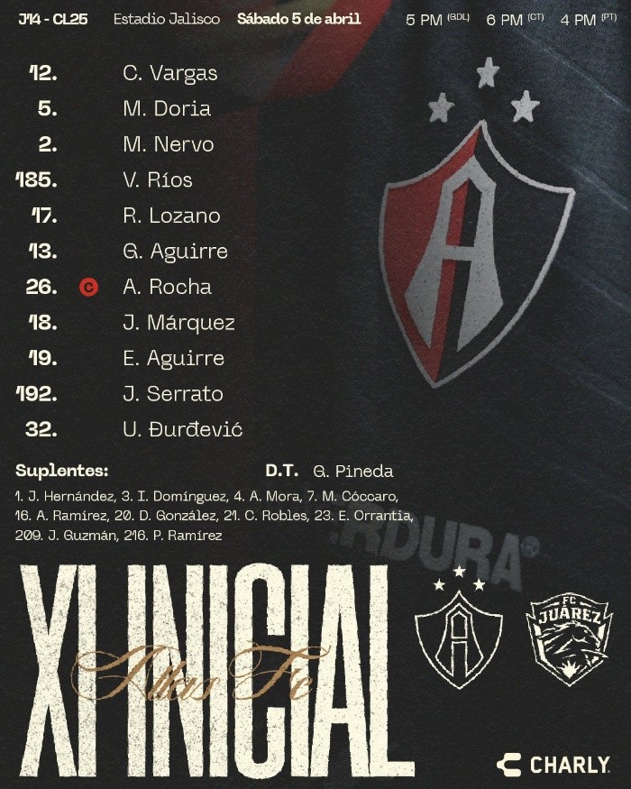 Deportes | Atlas vs Juárez • Momentos Destacados • Jornada 14 • Clausura 2025 Los rojinegros del Atlas reciben este sábado por la tarde a los Bravos de Juárez Sergio Alejandro Velázquez 5 de abril de 2025 - 16:00 hs ATLAS1 ‒ 1JUÁREZ Fin del partido 90' Agregan 5 minutos al segundo tiempo 89' Amarilla para Atlas Matías Cóccaro recibe la tercera amonestación para el conjunto rojinegro. 86' Gol del Atlas en fuera de juego Djuka se infiltra en el área de Juárez y realiza un disparo a quemarropa, llevando el balón a la red, pero la jugada es anulada por posición adelantada. 85' No hay penal Tras la revisión, el árbitro determina que un "contacto mínimo" sobre el delantero de Atlas no es suficiente para sancionarlo como falta. 83' Se revisa posible penal en el VAR Una patada sobre Uros Durdevic dentro del área de Juárez es revisada por el árbitro central en estos momentos. 80' Cambios en Juárez Salen: Jairo Torres y Raplh Orquín. Entran: Dieter Villalpando y Haret Ortega. 78' Juárez cerca del segundo Diego Campillo realiza un disparo desde fuera del área que es desviado por Vargas y termina impactándose en el travesaño. 74' Amonestación para Juárez Diego Campillo recibe la segunda tarjeta amarilla para el equipo visitante. 67' ¡Atlas empata el partido! Matías Cóccaro recibe un pase en profundidad de Rivaldo Lozano en el área y envía el balón a la portería tras un mano a mano con el arquero Sebastián Jurado. ¡Reacción rojinegra! Cóccaro se estrena como goleador y empata el marcador#MegaFutbol pic.twitter.com/qO30tw2fZS — TUDN MEX (@TUDNMEX) April 6, 2025 61' Juárez también con cambios Sale Ángel Zaldívar, entra Óscar Estupiñán. 57' Atlas realiza modificaciones Salen: Víctor Ríos y Gaddi Aguirre. Entran: Matías Cóccaro y Diego González. 49' ¡Gooooool de Juárez! Guilherme Castilho consigue la primera anotación para los Bravos con un disparo cruzado desde fuera del área. ¡Golazo de los Bravos! Guilherme saca un disparo desde fuera del área para abrir el marcador #MegaFutbol pic.twitter.com/7UWl7z4f6o — TUDN MEX (@TUDNMEX) April 6, 2025 Comienza el segundo tiempo Ambos equipos regresan sin modificaciones al terreno de juego. Fin de la primera mitad 40' Amonestación para Juárez Jairo Torres recibe tarjeta amarilla por jalar la camiseta de Aldo Rocha. 36' Otra amarilla para los rojinegros Jesús Serrato se lleva la segunda amonestación para los rojinegros. 33' Amarilla para Atlas Gaddi Aguirre recibe la primera amonestación del partido para el equipo local. 30' Partido concentrado a mitad de campo Ambos equipos mantienen una constante disputa por la posesión en medio campo; las jugadas de peligro han tardado en llegar y, hasta el momento, sólo Bravos ha realizado un disparo a puerta. 19' Atlas intenta mantener el balón Los rojinegros luchan constantemente por mantener la posesión del balón, que poco a poco se vuelve más equilibrada entre ambos equipos. Los locales comienzan a acercarse a la portería de Juárez, aunque aún no logran concretar la jugada que les permita abrir el marcador. 15' Juárez ataca la portería rojinegra Jairo Torres realiza un disparo raso desde fuera del área, pero Camilo Vargas logra quedarse con el balón. 5' Los Bravos arrancan con la posesión Los primeros minutos del encuentro se caracterizan por una constante disputa por el balón, que hasta el momento ha sido dominada por el conjunto visitante. Ninguno de los dos equipos ha generado una llegada de peligro al área rival, y Juárez se limita a buscar un camino claro hacia la portería defendida por Camilo Vargas. Comienza el partido El árbitro da el silbatazo y se empieza a disputar el partido sobre la cancha del Estadio Jalisco. Alineación de Atlas Alineación de Juárez Previa del partido Con objetivos muy distintos, los rojinegros del Atlas reciben este sábado por la tarde a los Bravos de Juárez, quienes llegan con la ilusión de escalar posiciones en la tabla general y meterse de forma directa a la Liguilla del futbol mexicano. Atlas se encuentra en una situación comprometida, ya que ocupa el tercer lugar en la zona de multas del cociente y está obligado a sumar puntos, sin importar el estilo de juego. En contraste, los Bravos marchan en la octava posición con 21 puntos, dentro del Play-In, pero con la mira puesta en colarse entre los primeros seis. En la jornada pasada, los Zorros protagonizaron un vibrante duelo ante Mazatlán con múltiples volteretas, aunque finalmente cayeron derrotados. Por su parte, Juárez logró una importante victoria en casa ante Puebla, lo que le permite mantener vivas sus aspiraciones de Liguilla. La escuadra tapatía regresa al Estadio Jalisco con la esperanza de repetir lo hecho en la jornada 10, cuando superó 3-1 al Atlético San Luis. Este fin de semana, buscarán dar la campanada y frenar el buen paso de los fronterizos. Martín Varini, técnico de Juárez, se mostró satisfecho por el reciente triunfo ante su afición y aseguró que el equipo enfrentará con ambición las últimas cuatro jornadas. Sobre Atlas, reconoció que se trata de un rival con jerarquía y difícil de vencer en casa, por lo que afrontarán el duelo con humildad. ¿Cuándo y dónde ver el Atlas vs Juárez? El partido está programado para las 17:00 horas y podrá verse por Televisa, TUDN y Vix. SV Temas Atlas Bravos de Juárez Futbol Mexicano Liga MX Clausura 2025 Lee También Monterrey vs Chivas • Momentos Destacados • Jornada 14 • Clausura 2025 Santiago Giménez sufre lesión en el duelo ante Fiorentina Randal Willars y Kevin Berlín ganan segunda medalla para México PSG consigue su cuarto campeonato seguido en la liga francesa