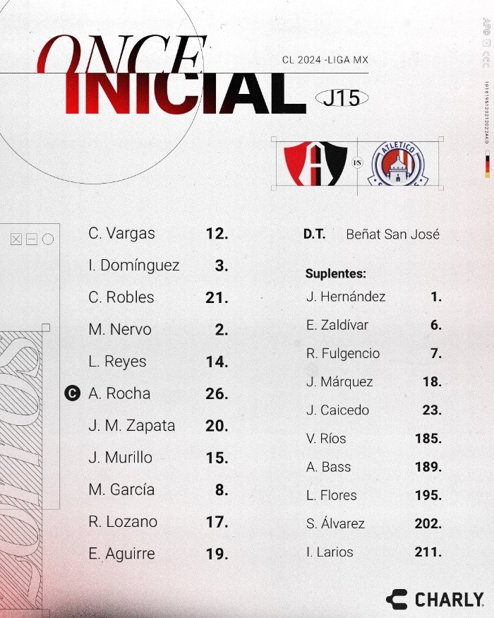 Deportes | Atlas vs San Luis • Momentos Destacados • Jornada 15 • Clausura 2024 • Liga MX Atlas enfrentará al Atlético de San Luis esperando mostrar una actuación digna en sus últimos partidos del torneo tras sufrir la eliminación en la jornada anterior Sergio Alejandro Velázquez 14 de abril de 2024 - 17:00 hs ATLAS2 ‒ 1SAN LUIS Fin del partido 90+6' San Luis ataca en los últimos minutos El Atlético de San Luis insiste en el ataque durante los últimos del partido, sin embargo, Atlas frena sus llegadas y parece que no podrán conseguir el empate. 90' Se agregan 7 minutos al segundo tiempo 88' Beñat San José con más cambios en Atlas Salen: Eduardo Aguirre y Mateo García. Entran: Edgar Zaldívar y Víctor Ríos. 78' Más cambios en el San Luis Salen: Sébastien Salles-Lamonge, Aldo Cruz y Benjamín Galdames. Entran: David Rodríguez, Jürgen Damm y Jesús González. 76' ¡Gooooooooooooooooooool del Atlas! Carlos Robles vuelve a marcar un gol y el Atlas ya consigue el desempate ante el San Luis. ⚽❤️⚫¡Goooool de @AtlasFC! ⚽❤️⚫¡Goooool de @AtlasFC! ⚽❤️⚫¡Goooool de @AtlasFC! Doblete de Carlos Robles y los rojinegros firman la remontada EN VIVO por @VIX https://t.co/wL6NIMMCY9 #DomingoDeFutEnTUDN | #LoNuestroEsElFutbol pic.twitter.com/zs18nn9Zrn — TUDN MEX (@TUDNMEX) April 15, 2024 75' Otro cambio para los rojinegros Sale Juan Zapata para dejar entrar a Jeremy Márquez. 69' Atlas no deja de atacar Los rojinegros suman diversas llegadas en las que se mantienen en constante ataque en busca del desempate. 65' Modificaciones en Atlas Salen: Rivaldo Lozano e Idekel Domínguez. Entran: Raymundo Fulgencio y S. Álvarez. 60' Atlas vuelve a perdonar El "Mudo" Aguirre recibe un buen pase frente a la portería del San Luis, pero el jugador tarda en realizar el disparo y Sánchez logra interferir en el ataque. 57' San Luis se queda cerca del segundo Benjamín Galdames hace un disparo que queda a un costado del arco; San Luis logra generar peligro pese a la inferioridad numérica. 53' ¡Tarjeta roja para el San Luis! Tras la revisión en el VAR, el árbitro decide expulsar a Franck Boli del encuentro. 51' Primera tarjeta amarilla para el San Luis, se revisa la jugada en VAR Franck Boli se lleva la primera tarjeta amarilla del partido, en estos momentos se revisa la jugada para una posible modificación a tarjeta roja. 47' Atlas regresa buscando Los rojinegros regresan al encuentro amenazando en el área del San Luis, sin embargo, dejan ir una buena oportunidad para modificar el marcador. Comienza el segundo tiempo Ambos conjuntos regresan al terreno de juego sin ninguna modificación en sus alineaciones. Fin del primer tiempo 45' Se agregan 6 minutos al primer tiempo 45' Atlas muy cerca del segundo El Atlético de San Luis se salva de un disparo del "Hueso" Reyes que termina impactando en la parte alta del travesaño. Los rojinegros ya superan a su rival en estos últimos momentos de la primera mitad. 34' ¡Gooooooooooooooooooool del Atlas! Atlas alcanza el empate tras verse presionados por el San Luis por varios minutos, Carlos Robles es quien hace la anotación. ⚽⚫❤️ ¡Gooool de @AtlasFC! ⚽⚫❤️ ¡Gooool de @AtlasFC! ⚽⚫❤️ ¡Gooool de @AtlasFC! Mudo Aguirre asiste y Carlos Robles marca el empate EN VIVO por @VIX https://t.co/wL6NIMMCY9 #DomingoDeFutEnTUDN | #LoNuestroEsElFutbol pic.twitter.com/YAHYfpO13I — TUDN MEX (@TUDNMEX) April 15, 2024 29' San Luis ejerce presión El Atlético de San Luis gana profundidad poco a poco para volver a amenazar con hacer más grande su ventaja. Atlas se concentra en defender su área y no logra conseguir su turno para atacar. 24' Primer cambio en San Luis por lesión Iker Moreno se ve obligado a abandonar el partido tras sufrir una lesión, en su lugar entra al encuentro Ricardo Chávez. 19' Errores en la coordinación de los rojinegros La falta de coordinación del Atlas tanto en el ataque como en la defensa expone dificultades desde estos primeros minutos del encuentro. Los Zorros no logran desarrollar sus jugadas y terminan cometiendo errores que los ponen en riesgo frente a San Luis. 13' Atlas intenta reaccionar Los rojinegros del Atlas poco a poco empiezan a alargar sus posesiones; Juan Zapata realiza un disparo que termina en tiro de esquina tras la intervención de Andrés Sánchez en la portería del San Luis, lo que representa la primera acción relevante para los Zorros. 7' ¡Gooooooooooooooooooool del Atlético de San Luis! Franck Boli consigue el primer tanto del partido para el Atlético de San Luis. ⚽���� ¡Gooool de @AtletideSanLuis! ⚽���� ¡Gooool de @AtletideSanLuis! ⚽���� ¡Gooool de @AtletideSanLuis! ���� Franck Boli abre el marcador para la visita �� EN VIVO por @VIX ������ https://t.co/wL6NIMMCY9 #DomingoDeFutEnTUDN | #LoNuestroEsElFutbol pic.twitter.com/nvIyls30TW — TUDN MEX (@TUDNMEX) April 15, 2024 4' San Luis genera riesgo en los primeros minutos Atlas arranca con presencia en el área rival, sin embargo, un error le da entrada al San Luis para acercarse a atacar y comenzar a generar riesgo. Hasta el momento aún no se define ningún bando dominante. Comienza el partido Empieza a rodar el balón sobre la cancha del Estadio Jalisco. Alineación de Atlas Alineación de Atlético San Luis Temas Atlas Atlético San Luis Futbol Mexicano Liga MX clausura 2024 Lee También México listo para un nuevo desafío en el Mundial Sub-17 Femenil Todas las selecciones que han calificado al Mundial 2026 hasta hoy Chivas y América calientan en redes el Clásico Nacional de la Fecha FIFA Barcelona interesado en Gilberto Mora, esto es lo que se sabe