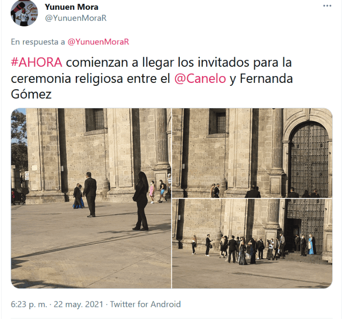 Saúl "Canelo" Álvarez y Fernanda Gómez unieron sus vidas por el civil el pasado15 de mayo en una ceremonia celebrada en Punta de Mita, Nayarit, sin embargo, este sábado 22 de mayo, lo harán de manera religiosa en la Catedral de Guadalajara en punto de las 19:00 hrs.