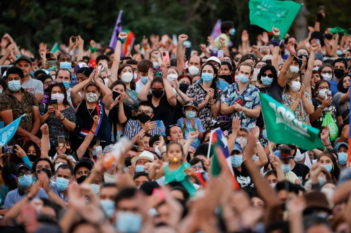 El nuevo presidente de Chile, el progresista Gabriel Boric, pidió a los chilenos trabajar juntos por "un nuevo Chile" en un histórico discurso con numerosos guiños al derrocado Salvador Allende (1970-1973) y recibido con "esperanza" entre sus partidarios y con escepticismo entre quienes no votaron por él."Quiero que sepan que no llegamos aquí sólo para llenar cargos, para generar distancias inalcanzables, sino para entregarnos en cuerpo y alma al compromiso de hacer mejor nuestra patria", proclamó desde un balcón del capitalino Palacio de La Moneda, sede de Gobierno.Entre ovaciones y al son de "El pueblo unido jamás será vencido" y "Chile despertó", miles de personas escucharon la intervención, un evento mucho más informal y cercano que la tradicional ceremonia de la mañana, en la que prestó juramento y recibió la banda presidencial de la mano de su antecesor, Sebastián Piñera.Junto a las banderas afines a Boric, el público también ondeaba telas de otros colectivos minoritarios: de los indígenas mapuches -que representan el 7 % de la población-, el movimiento feminista o la comunidad de la diversidad sexual."El pueblo de Chile es protagónico en este proceso. No estaríamos aquí sin sus movilizaciones", señaló Boric durante su intervención, cargada de gestos hacia el feminismo, el ecologismo, economía social o diversidad.El mandatario, que a sus 36 años es el presidente más joven y votado de la historia de Chile, arribó a la sede de Gobierno junto a la primera dama, Irina Karamanos, y tras saludar al público y desfilar delante de la guardia de honor, ingresó al Palacio para ofrecer sus primeras palabras.Para la politóloga de la Universidad de Chile, Daniela Campos, este primer discurso ha sido "muy emotivo y cargado de simbolismo"."Habló de las mujeres, de las disidencias, de los pueblos imaginarios. Le dio mucho protagonismo al pueblo, pero también les advirtió de alguna manera que no podrá hacer todo en su mandato", declaró."Hemos visto una toma de mando nueva, con mucha participación, menos acartonada, sin corbatas. Me parece interesante esta mezcla y cómo Boric va a modernizar las instituciones con componente popular", puntualizó Julieta Suárez-Cao, de la Universidad Católica y Red de Politólogas.Una vez más, el presidente citó al socialista Salvador Allende, que en 1973 y en el mismo Palacio desde donde Boric ofrecía su discurso, fue derrocado durante un bombardeo que marcó el inicio de la dictadura de Augusto Pinochet (1973-1990)."Adelante siempre, sabiendo que pronto se abrirán las grandes alamedas por donde pasará el hombre libre, para construir una sociedad mejor", señaló más de medio siglo después de que Allende pronunciara las mismas palabras.Este no fue el único gesto al expresidente socialista: antes de ingresar a La Moneda, Boric visitó y saludó la estatua que hay a las puertas del Palacio, levantada en su honor, en un gesto de homenaje.El exdiputado y antiguo líder estudiantil recalcó que el cumplimiento de sus metas "no será fácil", y aclaró que será necesario e invitó a todos a apoyar su proyecto, sus defensores y detractores, "porque los ojos del mundo están mirando".Entre los principales retos que citó figuran el cambio climático, la crisis energética, la situación migratoria en la frontera norte o la violencia contra las mujeres y disidencias."Cometeremos errores y lo deberemos enmendar con humildad escuchando siempre a los que piensan distinto, apoyándonos en el pueblo de Chile", manifestó.Para los expertos, su gobierno supone el inicio de una nueva era política, puesto que es el primer presidente ajeno a los dos grandes bloques de centro que gobernaron desde el retorno a la democracia en 1990 y trae bajo el brazo una agenda de cambios profundos y la idea de instalar en Chile un estado de bienestar.Para lograrlo, dijo rotundamente, "se necesita redistribuir la riqueza que producen quienes habitan nuestra patria"."Mi sueño es que, cuando terminemos, podamos mirar a nuestros hijos, a nuestras hermanas, a nuestras vecinas, y sintamos que hay un país que nos protege y acoge, que nos cuida, que nos garantiza derechos", concluyó.JM