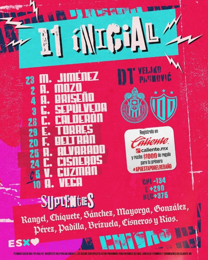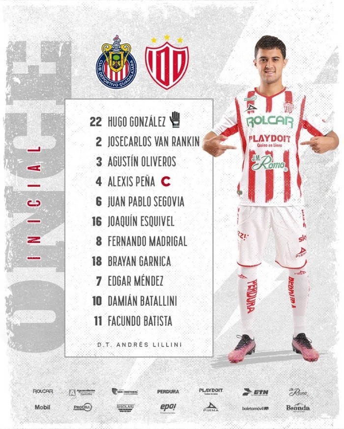 Deportes | Chivas vs Necaxa • Momento destacados • Jornada 14 • Clausura 2023 Chivas recibe esta tarde al Necaxa en busca de retomar el camino de la victoria. El Guadalajara tiene 3 años sin poderle ganar al equipo de los Hidrorayos. Iván Emmanuel Ortega Herrera 8 de abril de 2023 - 16:48 hs Chivas1 ‒ 0Necaxa Se acabó el partido Con solitario gol de Pável Pérez, Chivas se impuso ante Necaxa y llegó a 25 puntos en el torneo 90' Se agregan 5 minutos El silbante decide agregar cinco minutos más el partido. 85' Al ataque En busca de ampliar el marcador, el Guadalajara se va con todo al ataque. Necaxa resiste en la parte defensiva. Últimos minutos de partido. 79' Entra Brizuela Entra a la cancha el "Conejo" Brizuela, quien no veía acción desde la jornada 2 ante San Luis. Sale el Pocho Guzmán, quien le deja el gafete de capitán a su compañero. 71' GOOOOOOOL DE CHIVAS Gran triangulación, entre Mozo a Pável Pérez, quien de gran forma le pega al balón y vence a Hugo González. Se pone adelante en el marcador el Guadalajara. 66' Potente disparo Alexis Vega con pierna derecho saca un disparo potente, el arquero Hugo González recuesta y saca el balón a tiro de esquina. 64' Cambio rojiblanco El profe Pauno hace cambio en su equipo. Salió Fernando Beltrán e ingresa Pável Pérez. El "Nene" no sale muy contento, fue un partido complicado para él. 55' Chivas tiene que arriesgar El Guadalajara tiene que irse al ataque en busca de los 3 puntos. Muy precavido el equipo tapatío. Necaxa se encuentra haciendo su partido. ¡Comienza el segundo tiempo! Los mismos 22 jugadores saltaron a la cancha. Se esperan mayor número de emociones. Se terminó el primer tiempo Se van al descanso sin goles, en un partido, con pocas emociones. 45' Se escapó la oportunidad Cisnero por la banda, se la envía al "Piojo" Alvarado, quien le recentra al "Pocho", sin embargo Guzmán no puede rematar de buena manera. 40' Sin emociones Tal vez por el fuerte calor que azota en la ciudad, el partido disminuyó su ritmo. Jugadores ya esperan el descanso para irse a refrescar. 30' Se apaga el partido El duelo se estancó. Muy trabado en el medio campo. Ambos equipos buscando el error del rival. 22' Comienza a despertar Chivas se anima al ataque con Alvarado, "Chicote" y el "Nene" Beltrán, quienes buscan opciones de abrir el marcador. 15' Necaxa es mejor El Guadalajara no ha encontrado la menera de tener el balón. Necaxa ha sigo ligeramente mejor que su rival. Ya tuvo tres oportunidades de gol. 9' Calderón evita el gol Nuevamente Batallini se anima, mete un tiro potente, pero el "Chicote" Calderón sale al rescate y salva a su equipo. Necaxa con mayor proximación. 6' Avisa Chivas "Nene" Beltrán le hace un gran pase al "Chicote" Calderón, sin embargo, éste no pudo contoner el balón y se escapa la primera oportunidad del Rebaño. 2' Se salva el Guadalajara Damían Batillino estuvo mano a mano contra el arquero de Chivas, intentó globear el balón, sin embargo, el "Wacho" Jiménez reciste bien y evita que caiga el gol. ¡Comienza el partido! Chivas se ubica en la sexta posición con 22 puntos. Necaxa está hasta la posición número 13. Que gane el mejor. ¡Juega limpio, siente tu liga! Con el tema de la inclusión, se lleva a cabo el protocolo de la Liga MX. Jugadoresn ya están en el terreno de juego. Alineaciones del partido Así jugará esta tarde el equipo de Chivas. El "Poco" Guzmán y Alexis Vega van al ataque. El Pollo Briseño va de titular. Así salta esta tarde el equipo del Necaxa. El equipo visitante quiere dar la sorpresa Temas Chivas Necaxa Lee También "Chucky" Lozano reconoce que jugaría en Chivas o en América ¿Quién ganará el partido entre las América y Chivas? Esto dice la IA 'Chucky' Lozano hace ilusionar a Chivas con una declaración sobre su futuro Chivas Femenil, a una victoria de asegurar su lugar en Liguilla