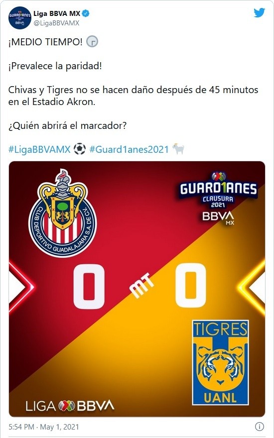 Chivas y Tigres son protagonistas de una de las rivalidades más intensas de los últimos torneos y esta tarde se ven las caras en el Estadio Akron. Ambos tienen la misión de sacar el triunfo y así llegar bien posicionados al repechaje del Torneo Guard1anes 2021.