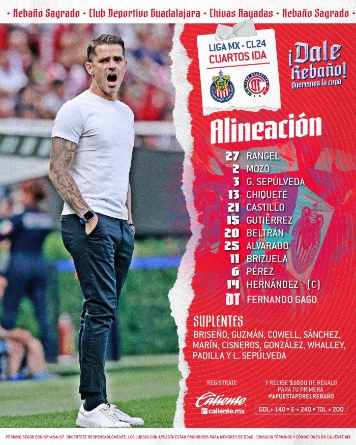 Deportes | Chivas vs Toluca • Momentos Destacados • Cuartos de Final Ida • Liga MX Chivas comenzará su paso en la Liguilla recibiendo a los Diablos Rojos del Toluca en la cancha del estadio Akron dentro del primer duelo de los Cuartos de Final Sergio Alejandro Velázquez 8 de mayo de 2024 - 18:00 hs CHIVAS1 ‒ 0TOLUCA Fin del partido 90+4' El Rebaño cerca del segundo El ataque de Chivas no ha dejado de llegar y los rojiblancos insisten por hacer más grande la ventaja de cara a la vuelta. 90' Se agregan 9 minutos al segundo tiempo 88' Otro cambio para el Toluca Sale Carlos Orrantia para dejar entrar a Marcel Ruiz. 86' ¡Goooooooooooooooooooooool de Chivas! El "Pocho" Guzmán lleva el balón hacia la red con asistencia de Roberto Alvarado. ⚽¡Gooool de @Chivas! ⚽¡Gooool de @Chivas! ⚽¡Gooool de @Chivas! Pocho Guzmán revienta la portería de Volpi con un zurdazo brutal EN VIVO por TUDN y @MiCanal5 https://t.co/wL6NIMMCY9 #LiguillaEnTUDN pic.twitter.com/J0dSG6Q644 — TUDN MEX (@TUDNMEX) May 9, 2024 85' El Guadalajara insiste por conseguir el primero Tras el gol anulado, Chivas no ha dejado de atacar al Toluca. 83' Tarjeta amarilla para el Toluca Brian García recibe la primera amonestación del partido. 80' Otro cambio para el Rebaño Sale Pável Pérez para dejar entrar a Cade Cowell. 75' Toluca realiza cambios Salen: Juan Pablo Domínguez y Jesús Ricardo Angulo. Entran: Maximiliano Araújo y Edgar López. 74' Anulan el gol de Chivas Tras la revisión en el VAR, el árbitro decide anular el gol por una mano de Pérez. ⚽❌ Gol anulado a @Chivas. Se revisa la jugada con el VAR y se marca mano de Pável Pérez EN VIVO por TUDN y @MiCanal5 https://t.co/wL6NIMMCY9 #LiguillaEnTUDN pic.twitter.com/enbyRggfwl — TUDN MEX (@TUDNMEX) May 9, 2024 73' El gol se revisa en el VAR Una posible mano de Pável Pérez se revisa en el VAR. 70' ¡Gooooooooooooooooooooooooooooool de Chivas! Pável Pérez consigue la primera anotación para el Rebaño. 69' Gago hace sus primeras modificaciones Salen Javier "Chiharito" Hernández e Isaác Brizuela para dejar entrar a Ricardo Marín y Víctor Guzmán. 65' Toluca mantiene en riesgo al Rebaño Las llegadas del Toluca no dejan de llegar y Chivas se esfuerza por defender su portería. 60' Alexis Vega avanza hacia la portería rojiblanca Vega realiza una jugada que le permite posicionarse dentro del área de Chivas para realizar un remate, pero el balón termina por arriba del arco. 55' Pável Pérez recibe un codazo de Juan Escobar Juan Escobar da un codazo a Pavel Pérez que le provoca un sangrado sobre la ceja, dan atención médica al jugador y el partido continuará debido a que el choque no fue intencional. 52' 'Chicharito' falla en posición adelantada Javier Hernández consigue posicionarse con ventaja para disparar ante Tiago Vopi, sin embargo, el jugador falla al definir su remate y marcan posición adelantada. 49' Tiago Volpi tendido en la cancha Tras un choque con Érick Gutiérrez, Tiago Volpi se mantiene sobre la cancha por un impacto en el cuello, sin embargo, el arquero de Toluca se mantiene en el juego. 47' Chivas cerca del primero Fernando Beltrán realiza un disparo que termina a un costado del arco de Volpi y, seguido a esto, llega otro disparo de Érick Gutiérrez asistido por "Chicharito" que tampoco logra ir a las redes. Con esto Chivas realiza sus jugadas más claras en lo que va del partido. Comienza el segundo tiempo El partido se reanuda con la segunda mitad sin ninguna modificación en Chivas y Toluca. Fin del primer tiempo 45' Se agrega 1 minuto al primer tiempo 42' Chivas domina el ataque El Rebaño ya suma minutos amenazando en el área del Toluca, sin embargo, no logran generar la jugada necesaria para llevar el balón hacia la red. 35' Ambos equipos intercambian constantemente el balón A ambos equipos les cuesta mantener la posesión y no han vuelto a llegar más jugadas de riesgo, el partido se mantiene reñido. 27' La defensa de Chivas obstaculiza a los Diablos Pese al buen posicionamiento que ha mostrado Toluca para avanzar hacia el área rojiblanca, la defensa del Rebaño logra complicar las cosas para los Diablos y obstaculiza sus intentos de rematar el balón. Sin embargo, Toluca cada vez suma más aproximaciones al arco de Rangel. 23' Rangel frena al Toluca El "Tala" Rangel logra atajar un disparo de Brian García que no le cuesta mucho esfuerzo por su posicionamiento en el área. El balón empieza a cambiar de bando constantemente mientras se turnan para atacar. ⚽ ¡Brian García prueba de media distancia y Tala Rangel baja la cortina! EN VIVO por TUDN y @MiCanal5 https://t.co/wL6NIMMCY9 #LiguillaEnTUDN pic.twitter.com/hetwMmHP0j — TUDN MEX (@TUDNMEX) May 9, 2024 17' Toluca responde en el área rojiblanca El Toluca logra conseguir la posesión para avanzar hacia el área de Chivas y comenzar a generar peligro. El partido comienza a verse igualado. 13' Chivas se mantiene buscando El Rebaño insiste por encontrar un espacio para avanzar hasta la portería de los Diablos, el partido se lleva a cabo de momento a mitad de cancha. 8' Se calientan los ánimos dentro de los primeros minutos Un choque entre Mozo y Meneses provoca el primer conflicto dentro de este encuentro entre ambos conjuntos. 5' Alexis Vega recibe abucheos de la afición rojiblanca Con el primer toque de Vega, la afición dirige una ola de insultos y abucheos a quien en el pasado vistió la camisa del Guadalajara. 3' Primera llegada del partido para Chivas Fernando Beltrán manda un centro que queda adelantado para Javier Hérnandez; Chivas realiza así el primer acercamiento del partido. Arranca el partido El árbitro da el silbatazo y se empiezan a jugar los cuartos de final en la cancha del Estadio Akron. Alineación de Chivas Alineación de Toluca Temas Chivas Diablos Rojos del Toluca Liga MX Futbol Mexicano clausura 2024 Liguilla Clausura 2024 Lee También México listo para un nuevo desafío en el Mundial Sub-17 Femenil Todas las sel