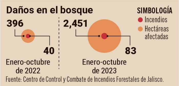 En este año, el Bosque de La Primavera, cuyo día se conmemoró el pasado 27 de octubre, registró 83 incendios forestales, lo que representó una afectación de dos mil 451 hectáreas. Eso significa el doble de los 40 documentados en 2022, según estadísticas del Centro de Control y Combate de Incendios Forestales de Jalisco.Natalia Osorio, integrante de “Por amor a los bosques de Jalisco”, afirma que hace falta que las autoridades hagan cumplir la ley y clausuren los cambios de usos de suelo. Arturo Curiel, investigador de la UdeG, remarca que este año fue atípico, ya que los siniestros comenzaron desde febrero, cuando en otros años inician en meses posteriores. “Y la mayoría siguen siendo provocados. Después de 50 años no se logra una mejor estrategia en la parte de la prevención”.La Comisión Estatal de Derechos Humanos de Jalisco (CEDHJ) reporta que, hasta el pasado 30 de junio, había tres juicios cuya litis se enfoca en la desincorporación de hectáreas del Decreto de Creación del Área Natural Protegida (ANP) del Bosque de La Primavera.“Esta defensoría del pueblo tiene conocimiento de, al menos, las siguientes acciones jurisdiccionales que se encuentran actualmente en litigio, bajo el mismo argumento: desincorporar hectáreas que forman parte del polígono del Área Protegida, Flora y Fauna de La Primavera”.Según la información presentada, se busca desincorporar mil 648 hectáreas entre los ejidos Huaxtla (El Arenal) y Licenciado Adolfo López Mateos (Zapopan). Además, hay otro litigio con el Ejido Jocotán, aunque no reportan las hectáreas en juicio.La Comisión Nacional de Áreas Naturales Protegidas indica que el Área Natural Protegida del Bosque de La Primavera tiene una superficie de 30 mil 500 hectáreas, distribuida en territorio de los municipios: Tala, Zapopan, El Arenal y Tlajomulco de Zúñiga, administrada por la Comisión y por el Gobierno de Jalisco.Sin embargo, el polígono del Área Natural Protegida ya no es el mismo que se autorizó y que continúa vigente debido a la desincorporación de cientos de hectáreas por órdenes judiciales, el crecimiento urbano no planificado y la invasión de particulares en zonas no urbanizables, conocidas como zonas urbano forestales. “Es decir, el incremento de asentamientos humanos irregulares a las periferias del Área Natural Protegida de Flora y Fauna de La Primavera, el constante cambio de uso de suelo por parte de autoridades federales que ha dado pie a la edificación de desarrollos habitacionales en las inmediaciones, situaciones que evidentemente han repercutido no sólo en la preservación del Área Natural Protegida, sino también en la población que habita cuenca abajo”, describe la Comisión Estatal de Derechos Humanos.Agrega que el polígono protegido ya no es el de 30 mil 500 hectáreas, situación que tiene cerca de 15 años que se modificó. “Lo anterior, en virtud de que mediante resolución del 11 de abril de 2007 que se emitió dentro del juicio de amparo 413/2001-146 dictada por el Juez Tercero de Distrito en Materia Administrativa en el Estado de Jalisco, se dejó insubsistente el Decreto expedido por el ejecutivo federal respecto a la superficie aproximada de 640 hectáreas que eran reconocidas dentro del polígono del ANP en comento, y que pertenecían dichos terrenos al Ejido Santa Ana Tepetitlán, modificando judicialmente las consecuencias del decreto”.Ante la declaratoria estatal del Día del Bosque La Primavera celebrada el pasado 27 de octubre, especialistas y académicos alertan por el intento de propietarios de reducir las hectáreas del Área Natural Protegida, por lo que pidieron recurrir a distintas acciones, como la expropiación.Natalia Osorio, integrante de “Por amor a los bosques de Jalisco”, recuerda la promesa no cumplida relacionada con la tenencia de la tierra. “El gobernador en campaña prometió que expropiaría el bosque y no lo ha cumplido, sigue siendo propiedad privada y ejidal, sin ser un parque nacional”.Osorio considera que la cuestión de la propiedad, que es privada y ejidal, no asegura la conservación.“Si este fuera un parque nacional y la propiedad fuera pública, el servicio sería para la comunidad en general. Pero si desde el gobierno estatal y federal no están dispuestos a gastar en pagar mejor a brigadistas, menos en los terrenos. Parece una simulación”.Arturo Curiel Ballesteros, profesor investigador del Instituto de Medio Ambiente y Comunidades Humanas de la Universidad de Guadalajara (UdeG), opina que uno de los retrocesos más importantes es que algunos ejidatarios se han organizado para eliminar el decreto de protección en sus terrenos. “Porque todos los decretos se sustentan en la Constitución. Me parece un retroceso enorme y una condición de vulnerabilidad innecesaria”.Recuerda que este tipo de acciones son perjudiciales para el patrimonio de los pueblos. “Santa Ana Tepetitlán fue el primero, y recientemente nos dieron la noticia de La Venta de El Astillero. Se ampararon ante el decreto, y la resolución de algún juez les fue favorable y se han ido segregando las 30 mil 500 hectáreas que protegía el decreto federal. Me parece terrible para el bosque y todas las áreas protegidas porque crea un antecedente”.CLAVESLegislación. La Ley General de Desarrollo Forestal Sustentable establece que no se podrá otorgar autorización de cambio de uso del suelo en un terreno incendiado sin que hayan pasado 20 años y que se acredite a las autoridades federales que la vegetación forestal afectada se ha regenerado, más aún, cuando ocurren incendios dentro de un ANP o zonas de recuperación como El Bajío u otros esquemas de conservación, existe ya una prohibición para cambiar el uso de suelo por cualquier actividad que no esté contemplada en el programa de manejo ambiental.Manejo. Otra de las problemáticas detectadas por la CEDHJ es que el programa de manejo no incluye las subzonas de preservación, uso