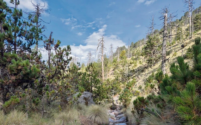 La cumbre, al otro lado del cielo, estaba oscurecida por las nubes. No había más testig de su cúspide que la montaña inmensa, azulada, titán antiguo del valle, horizonte más allá del páramo inmenso de la laguna seca, desordenada por los espirales enterregados de las tolvaneras. De pronto, en un resquicio entre la bruma, apareció la cima, el macizo volcánico con su picacho característico, cuyas nieves, en algún momento, se creyeron eternas, y que ahora se ansían año con año. El Nevado de Colima, coloso de nuestro Sur, gigante rocoso del valle de Zapotlán, punto final o punto de partida de la aridez grande de la Laguna de Sayula. Azotea del estado, cuya cima, con suerte, es visible desde muchas esquinas, pueblos y regiones -desde el océano incluso-, pues con sus 4 mil 240 metros sobre el nivel del mar, es la montaña más alta de Jalisco, y la séptima en cuanto altura en México. Cúspide que muchos intentan conquistar, a veces con éxito, otras no tanto, por ese afán extraño del humano de probarse a sí mismo, por curar las heridas recientes de un corazón roto, por alguna crisis de mediana, tardía o temprana edad, por el impulso arrogante de desafiar a la naturaleza, o tal vez, simplemente, por el mero gusto de sentirse un poco más cerca de las nubes, ver el mundo desde las alturas, y saberse minúsculo. En todo caso, no es tarea fácil. Es la alta montaña, sometida a las veleidades del clima, vientos caprichosos, y un calor contradictorio en medio de las alturas gélidas que acalambran las manos y resquebrajan los labios como cáscaras.El Nevado de Colima, si el tráfico del sur lo permite, se encuentra a unas dos horas de distancia aproximadas de Guadalajara. Si el firmamento lo permite, también, el coloso aparece de pronto coronando las distancias de la carretera siempre recta, un cúmulo vertical de pinos, formaciones rocosas, madera, verdor y bruma. Para llegar al Parque Nacional se requiere otra hora de manejo por la carretera estatal El Grullo-Ciudad Guzmán, por un camino difícil de terracería, cráteres temibles y curvas despedradas entre árboles enormes y plantaciones intransigentes de aguacate a pesar del decreto de Área Natural Protegida. El mundo, durante el ascenso, va cambiando poco a poco, con el aroma de la humedad siempre presente, la maleza verde serpenteando entre los pinos, y la posibilidad de ver cuervos, conejos, correcaminos, e incluso venados. Es un mar de vida. Es la riqueza de las alturas de Jalisco, donde coexisten tres ecosistemas, el pastizal alpino, el bosque de oyamel y el bosque de altura. Y, al final del sendero sinuoso, una caseta indica el final y el principio del recorrido: el Parque Nacional Nevado de Colima con sus laderas boscosas, sus praderas de flores amarillas, sus pinares despeinados por el silencio azul, y su cima portentosa, epicentro de las nubes, y cúspide de Jalisco. Desde la carretera no era más que un pico recóndito; frente a frente, el picacho es una muralla de piedra, un atlante gigantesco; cima a la que, con suerte, se habría de llegar. El Parque Nacional Nevado de Colima se creó por medio de un decreto presidencial del entonces presidente Lázaro Cárdenas, en septiembre de 1936. Comprende una superficie de más de 6 mil hectáreas desperdigadas entre los límites de Jalisco y Colima, en el sistema montañoso denominado Complejo Volcánico de Colima, que incluye al Nevado, y al activo Volcán de Fuego que de tanto en tanto escupe fumarolas ardientes.El Parque Nacional, por su altura, por su ubicación, por su humedad, y por los vientos que recibe de la mar no tan distante, resguarda ecosistemas y especies únicas en su tierra de origen volcánico, su tipografía atravesada de accidentes, y su “aislamiento geográfico” respecto a otras cimas montañosas. Dentro del Área Natural se han identificado 124 especies de mamíferos, y cerca de 117 especies de aves, además de especies endémicas -es decir, que no habitan en ninguna otra parte del mundo-, con sus respectivas amenazas, porque si de algo nos destacamos los humanos, es en no saber cuidar. Dentro del Parque Nacional es posible acampar, pasar días de campo; hay miradores -aunque cualquier punto del parque es un monumento a lo escénico-, pero el objetivo, no obstante, era la cumbre. Siendo uno de los pocos lugares del Occidente de México para practicar las artes ingratas del montañismo, el Picacho del Nevado de Colima atrae, y con razón, a incontables senderistas, montañistas, y un número incalculable de descorazonados con los romances rotos. Hay múltiples maneras de llegar a la cima, rutas y atajos. Se requiere paciencia, buena respiración, buenas botas, buen talante para proseguir cuando la altura comienza a hacer estragos, y sobre todo, buenas rodillas. Dependiendo de la ruta, del paso y del entusiasmo, el ascenso puede tomar hasta cuatro horas, más las respectivas horas de regreso. Las rutas más populares parten a través del campamento “La joya”, o a través de “El Fresnito”, por las antenas que encaran al Volcán de Fuego, y que constantemente lo están monitoreando en sus fumarolas impredecibles. Sea cual sea la ruta, el ascenso es una experiencia escénica, con vistas de barrancos, praderas y pastizales, pinares entre cuyas copas graznan los cuervos, riachuelos minúsculos que confluyen entre flores, troncos secos y barrancos tapizados de musgo, cementerios de árboles derribados por el fango y por las lluvias torrenciales. Mientras más arriba se está, un retrato del horizonte, Jalisco como una maqueta, minúsculo, todo lo que somos desde una perspectiva cartográfica, como las líneas de un mapa. Metro a metro ascendido, el ecosistema va cambiando. Los bosques sombríos de aroma penetrante y saturados de verdor y de flores, pronto se convierten en arenales rocosos, en extensiones de rocas y de piedras donde brotan los musgos y los zacatales tenaces. Los árboles son sustituidos por esa especie de desierto extraño 