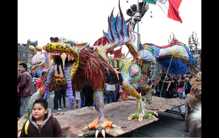 Cultura | Forman parte de la celebración del Día de Muertos del estado de México Cautivan en el Zócalo capitalino unos 50 alebrijes monumentales Atrajeron la presencia de decenas de personas, quienes no pierden la oportunidad de retratarse con estas extraordinarias obras de arte Por: NTX 5 de noviembre de 2012 - 08:31 hs Padres de familia acompañados de sus pequeños y hasta las abuelitas se pararon un instante al lado de los alebrijes. NTX / CIUDAD DE MÉXICO (05/NOV/2012).- Tras su estancia en Paseo de la Reforma, cerca de 50 alebrijes monumentales llegaron al plancha del Zócalo capitalino, lugar al que atrajeron la presencia de decenas de personas, quienes no pierden la oportunidad de retratarse con estas extraordinarias obras de arte. Como parte de la celebración del Día de Muertos en esta ciudad, estos animales imaginarios que a menudo mezclan diferentes especies y que se caracterizan por sus colores vivos y decorado con múltiples detalles, son la atracción en el Primer cuadro del Centro Histórico. A pesar de la ligera llovizna y el aire frío que se siente en ese lugar, chicos y grandes quedan maravillados por las esculturas de hasta cinco metros de altura y no pierdan la oportunidad de admirar las geniales esculturas realizadas por artesanos provenientes de diversos estados de la República. Padres de familia acompañados de sus pequeños y hasta las abuelitas se pararon un instante al lado de lo que parecen ser dragones, sapos, tortugas, demonios, conejos con alas, peces, catarinas, entre otros, para llevarse consigo la tradicional foto del recuerdo. Es de mencionar que las esculturas desfilaron hace un par de semanas por calles de esta ciudad como parte de Desfile y Concurso de Alebrijes Monumentales del Museo de Arte Popular (MAP). El Cipactli, Chinahuatito y Chihuayólotl son algunos de los alebrijes que causan asombro ante sus dimensiones, colores y diseños, a capitalinos, quienes en este puente de Día de Muertos disfrutaron de estas criaturas fantásticas. A diferencia de otras ediciones, en esta ocasión el mejoramiento y perfeccionamiento de las técnicas de construcción de las piezas era evidente mediante el imaginativo uso de cartonería y materiales reciclables. Luego de la lluvia que cayó la tarde-noche de ayer en esta ciudad, las esculturas se aprecian sin ningún deterioro, por el contrario, lucen llenas de colorido y toques surrealistas. Temas México Patrimonio Día de Muertos Recibe las últimas noticias en tu e-mail Todo lo que necesitas saber para comenzar tu día Registrarse implica aceptar los Términos y Condiciones