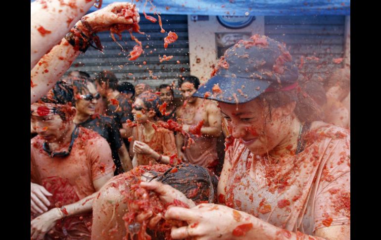 Cultura | En medio de una guerra de tomates, se conmemora la tradicional celebración Celebran 22 mil personas el 70 aniversario de La Tomatina En medio de una guerra de tomates, se conmemora la tradicional celebración que ha hecho a Buñol un sitio conocido mundialmente Por: NTX 26 de agosto de 2015 - 09:03 hs MADRID, ESPAÑA (26/AGO/2015).- Alrededor de 22 mil personas participaron en la tradicional fiesta de la "Tomatina" en Buñol, Valencia, que este año conmemoró su 70 aniversario con el lanzamiento de 150 toneladas de tomates. La celebración reunió, como en los últimos años, a jóvenes provenientes de 96 países, quienes este año pagaron 10 euros para acceder a las calles donde seis camiones lanzaron los tomates maduros. Este año fueron cinco toneladas más de lo habitual. Por espacio de una hora, las calles del centro de Buñol se bañaron de color rojo, que además de impregnarse en los cuerpos de los participantes, también ocurre en las fachadas y paredes que después son lavadas para que evitar que se sequé el puré de la hortaliza. Este año, la mayoría de los participantes fueron jóvenes de España (más de un 20%), Reino Unido (un 14%), India (10%), Japón (8%), Estados Unidos (7%), Australia (6%), y el resto de otras nacionalidades. Esta tradición data de 1945, cuando en las fiestas populares de verano, en el desfile de disfraces de los cabezudos y gigantes, dos grupos arreglaron sus diferencias con los tomates de un puesto de verduras que encontraron allí. Un año después, los jóvenes repitieron el altercado de manera voluntaria y llevaron los tomates de su casa, y aunque les era impedida la celebración, continuaron con la fiesta hasta que fue prohibida a inicios de los años 1950. En 1955, cuando la fiesta estaba censurada, se celebró como protesta "El entierro del tomate", que se trataba de una manifestación en la que los vecinos portaron un ataúd con un gran tomate dentro. En 1957 se permitió llevar a cabo la Tomatina y se instauró la fiesta de forma oficial. Desde 1980 es el Ayuntamiento de Buñol el que organiza esta curiosa batalla que les ha hecho conocidos mundialmente. Temas España Patrimonio Cultura Tradición Lee También Festival Internacional de Danza Jalisco reúne propuestas de cinco países en su edición 28 ¿Por qué la obsesión por estar delgado, según la psicología? Vive el otoño entre las calles de Guadalajara Guadalajara será sede del IV Congreso Internacional de Patrimonio Artístico y Cultural Recibe las últimas noticias en tu e-mail Todo lo que necesitas saber para comenzar tu día Registrarse implica aceptar los Términos y Condiciones
