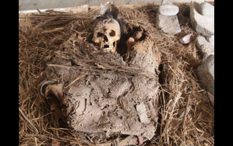 Los restos óseos, fueron encontrados el pasado 10 de julio, están envueltos en un textil con pigmento y un petate. El cráneo aún conserva cabello y se pueden ver también algunos dientes, así como una parte de la osamenta, indicaron los especialistas.