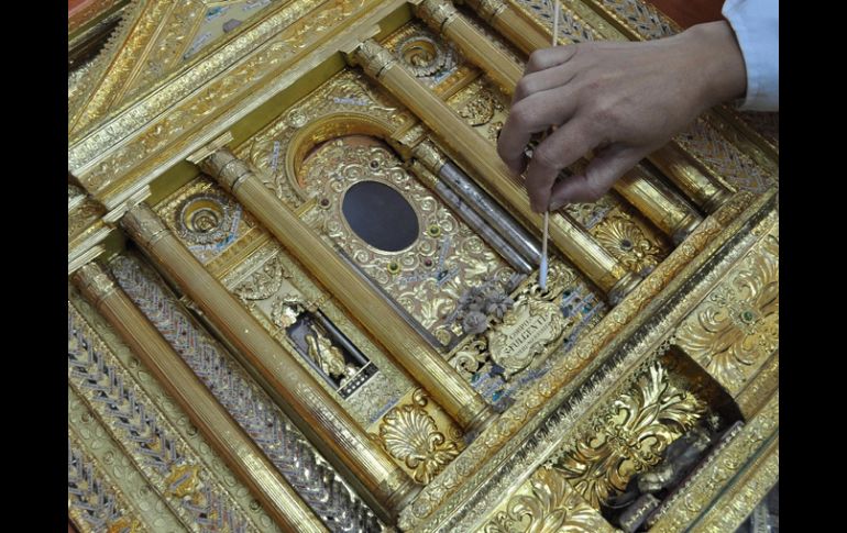 Cultura | Se trata de una pieza de arte sacro del siglo XVII El INAH restaura relicario antiquísimo En los próximos meses será exhibido de nueva cuenta en el Museo del Carmen de la Cuidad de México Por: SUN 17 de diciembre de 2010 - 12:13 hs Este objeto contiene los restos de un infante santo. NOTIMEX / CIUDAD DE MÉXICO (17/DIC/2010).- El relicario del llamado "Niño Mártir" que contiene los restos óseos atribuidos al niño San Fulgencio fue restaurado por especialistas del Instituto Nacional de Antropología e Historia (INAH) y en los próximos meses será exhibido nuevamente en el Museo del Carmen de la Ciudad de México. La pieza de arte sacro del siglo XVII es considerada de las pocas que hay en México en su tipo. Los expertos del INAH realizaron la limpieza del relicario y de preservación de los huesos, lo mismo que del estuche donde se encuentran, labores que hoy registran un avance del 90 por ciento. Consiste, detalló el instituto, en una caja de madera de 56 por 65 centímetros, en cuya parte superior tiene un retablo en miniatura de formas clásicas: columnas, entrecalles, nichos y tímpano, elementos hechos con cartón y forrados con papel de oro troquelado, que le da la apariencia de los altares de templos novohispanos. En la parte baja de la caja se halla una urna cubierta con cristal, que contiene los restos óseos atribuidos al niño mártir san Fulgencio, a quien está dedicado el relicario. En el centro del pequeño retablo se observa la leyenda Corpus S. Fulgentis pueri martiris, y debajo una escultura en cera del mismo santo, mientras que en la parte superior central del altar tiene pegadas varias reliquias, entre las que destaca una muela. Las restauradoras explicaron que el relicario llegó a los talleres de la Coordinación Nacional de Conservación, en Churubusco, al sur de la Ciudad de México, con desprendimientos del papel, aunque el daño más grave se presentaba en las reliquias de san Fulgencio, debido a que algunos huesos se tenían alto grado de deterioro, e incluso corrían el riesgo de pulverizarse con cualquier movimiento. "El problema general de la pieza fue provocado por el exceso de acumulación de polvo, a pesar de tener una protección de vidrio, porque los sellos se desprendieron, lo que favoreció su introducción y opacó los papeles; así mismo, también presentaba indicios de ataque de insectos, por lo que tuvo que ser fumigada", explicaron. Luego de un proceso de limpieza, las partes doradas recuperaron su coloración original y brillo, en tanto que los forros rojos y naranjas fueron restituidos por nuevos ante el riesgo de desprendimiento y en 2011 estará listo para mostrarse de nuevo al público que visite el Museo del Carmen. Temas INAH Antropología Restauración Lee También México y EU siguen colaboración para recuperar bienes culturales Estudio revela los niveles de violencia extrema durante el Neolítico Revivir el arte: anuncian rehabilitación de la Escuela de Artes INAH tiene nuevo director: Vázquez Herrera sustituye a Diego Prieto Recibe las últimas noticias en tu e-mail Todo lo que necesitas saber para comenzar tu día Registrarse implica aceptar los Términos y Condiciones