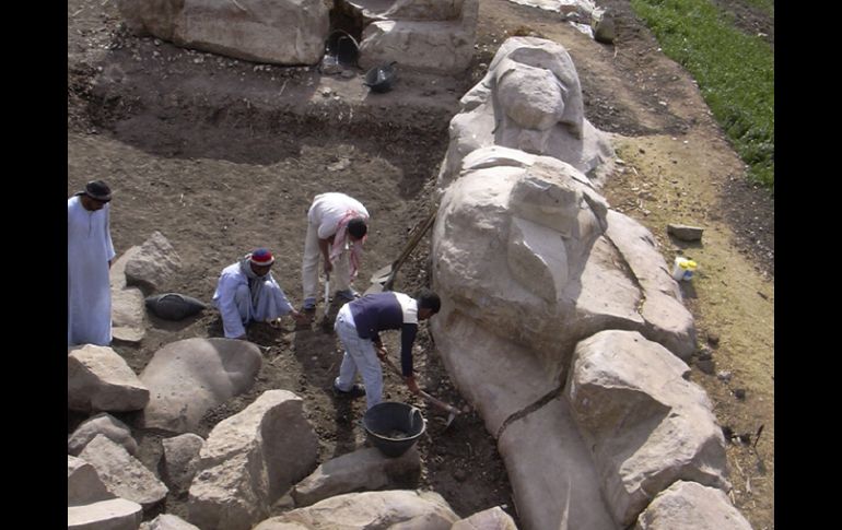 Cultura | El coloso mide 13 metros de altura Encuentran la estatua más grande de Amenhotep III en Egipto En la ciudad de Luxor arqueólogos egipcios descubrieron la estatua más grande encontrada hasta ahora de Amenhotep III Por: EFE 26 de abril de 2011 - 10:19 hs Actualmente se realiza la limpieza y restauración de la pieza. AP / EL CAIRO, EGIPTO (26/ABR/2011).- Arqueólogos egipcios han descubierto la estatua más grande encontrada hasta ahora del faraón Amenhotep III, en la ciudad de Luxor, a unos 700 kilómetros al sur de El Cairo, informó hoy el ministro de Estado para Antigüedades Zahi Hawas. La estatua fue hallada en excavaciones llevadas a cabo en el área de Qarna, donde se encuentra el templo de Amehotep III (1390-1352 a.C.), en la ribera oeste del río Nilo, en Luxor, precisa el ministro en un comunicado difundido por su oficina. El coloso, que está esculpido en cuarcita pintada, y que mide trece metros de altura y casi seis metros de ancho, está compuesto por siete grandes fragmentos, precisa Hawas en la nota. La estatua era una de las dos que flanqueaban la entrada norte del templo de Amehotep III y es probable que se desplomara durante el terremoto que sacudió Egipto el año 27 a. C. Actualmente se efectúa la limpieza y restauración de los siete fragmentos para volver a emplazar el coloso en su lugar original, pero la cabeza aún continúa sepultada en la arena, por lo que los expertos seguirán con las excavaciones para encontrarla, indicó el ministro. Hawas no descartó la posibilidad de que sea encontrada la segunda estatua de Amenhotep III durante la temporada actual de trabajo arqueológico en la zona. Esa pieza fue descubierta por primera vez en 1928 por un arqueólogo egipcio y otro alemán, pero fue olvidada en una zona agrícola hasta que fue cubierta por la tierra. Por su parte, el supervisor de las excavaciones, el arqueólogo Abdel Gafar Wagdi, dijo que los expertos descubrieron también una estatua de la diosa de la Curación, Sejmet, fabricada en granito negro, de 185 centímetros de largo y 74 de ancho. La escultura fue hallada al norte del templo de Amenhotep III, que mandó construir muchas estatuas de Sejmet, después de que enfermara en los últimos días de su vida, recordó Wagdi. Amenhotep III, uno de los faraones más destacados de la dinastía XVIII, fue padre del rey Akenatón y abuelo de Tutankamón. Temas Arqueología Egipto Patrimonio Zonas Arqueológicas Lee También Trump y líderes de Egipto, Qatar y Turquía firman fin de la guerra en Gaza Trump llega a Egipto para copresidir la firma del fin de la guerra en Gaza Más de 400 camiones con ayuda humanitaria ingresan a Gaza desde Egipto ¿Irán asistirá a la cumbre de paz sobre Gaza en Egipto? Recibe las últimas noticias en tu e-mail Todo lo que necesitas saber para comenzar tu día Registrarse implica aceptar los Términos y Condiciones