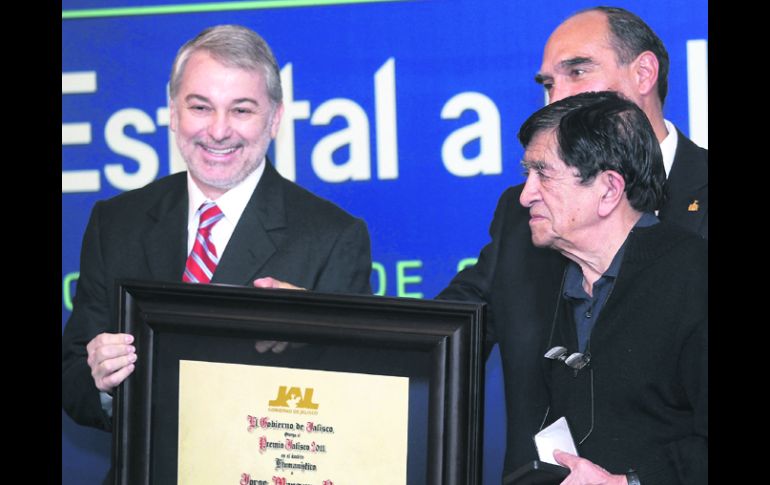 Cultura | Destacan a personajes del ámbito humanístico, deportivo, cívico, entre otros Entregan los Premios Jalisco Jorge Manzano, Felipe Garrido y Carlos Terrés lo recibieron en los ámbitos humanístico, literario y cultural, respectivamente Por: EL INFORMADOR 11 de diciembre de 2012 - 23:46 hs FILÓSOFO. El sacerdote jesuita Jorge Manzano al momento de recibir el Premio Jalisco al Mérito Humanístico. / GUADALAJARA, JALISCO (12/DIC/2012).- Tras recibir ayer el Premio Jalisco Jorge Manzano, Felipe Garrido y Carlos Terrés, reconocidos en el ámbito humanístico, literario y cultural, respectivamente,los tres coincideron en que el hecho significa una gran responsabilidad y la obligación de ser mejores en lo que hacen, más allá de los 88 mil pesos con que está dotado. En la ceremonia, realizada en Casa Jalisco, el gobernador del Estado Emilio González Márquez entregó los Premios Jalisco y los Premios de la Juventud a personas destacadas en los ámbitos humanístico, deportivo, cívico, artístico, laboral y científico. El filósofo y sacerdote jesuita Jorge Manzano, ganador del Premio Jalisco 2011 en el ámbito Humanístico, dice que ser distinguido fue “un honor inmerecido”. Jorge Manzano Pérez es profesor de filosofía en la UdeG y en el Instituto Tecnológico y de Estudios Superiores de Occidente (ITESO). Recuerda cuando un día le dijeron que tenía que encargarse de realizar conferencias abiertas “al gran público” con la encomienda de dar mayor pujanza a la reflexión filosófica de la ciudad. Es por eso que a partir de 1986, este hombre de 82 años de edad ha organizado 35 ciclos de conferencias “que se han hecho famosas en Guadalajara”. Además, desde 1992 dirige la revista de filosofía XIPE-TOTEK y festeja que esta publicación alcance más de 20 años, meta difícil para una publicación especializada. Espera tener listo un libro a principios de 2013. Manzano Reyes donará el monto del premio al grupo Carpe Diem, del que forma parte desde 2007 y cuya meta es hacer de la ciudad “un gran centro de espiritualidad y de cultura avanzada”. El dinero servirá para cubrir los gastos de arranque del Segundo Diálogo Multicultural, que se llevará a cabo en Guadalajara en 2014 y del que Carpe Diem funge como organizador. El escritor jalisciense Felipe Garrido, Premio Jalisco 2011 en el ámbito Literario, destaca pertenecer a esta lista exclusiva que también incluye al poeta Hugo Gutiérrez Vega, Antonio Alatorre, Emmanuel Carballo, Ernesto Flores, y que se extiende hasta Luis Armenta Malpica, Ricardo Yáñez, Guillermo Fernández y Dante Medina. Ganador también del Premio Xavier Villaurrutia por su libro de cuentos Conjuros (Jus, 2011), Garrido resalta que recibe el premio en un momento muy afortunado de su vida: “Que el mismo año llegue un reconocimiento a nivel nacional como el Premio Villaurrutia, y un reconocimiento de mi tierra como el Premio Jalisco, pues qué más se puede pedir”. Nacido en Guadalajara en 1942 y con más de 30 años dedicados a la escritura, dice que no ha estado en busca de los premios. Distinguido con el Premio Jalisco 2011 en el ámbito Cultural, el escultor y pintor Carlos Terrés fue el encargado de hablar a nombre de todos los distinguidos durante la ceremonia de premiación, Terrés afirma que a sus 62 años de edad, en su vida se afianza un momento en el que su vocación está en la plenitud de servir: “La vocación de estar dentro de ese camino tan difícil que es el arte”. Dice que el premio le obliga a hacer el trabajo con más cariño y entusiasmo para después compartirlo con las personas que lo apoyan “a seguir caminando”. “En esta ocasión a mí me han designado como ganador del Premio Jalisco en Cultura. Yo he dicho que es una distinción que no merezco porque todavía hay mucho que corregir en el trabajo que hago, pero por otro lado, es el reconocer muchos años de trabajo en este campo. Empecé prácticamente a los ocho años cuando vendí mi primera obra. Esta distinción es una huella más que va uno dejando en este camino muy largo por recorrer”. Carlos Terrés nació en Lagos de Moreno en 1950. Sus obras han sido publicadas en varios documentos bibliográficos en España, Estados Unidos y México. Algunas de sus creaciones artísticas están expuestas de manera permanente en 13 países de cuatro continentes; museos e instituciones culturales, educativas y de servicio al público. Más de seis décadas de historia El Premio Jalisco surgió en 1950 por iniciativa del entonces gobernador de Jalisco Agustín Yáñez para galardonar a los jaliscienses que destacan con actos, obras o proyectos a favor del Estado, del país o la humanidad en los ámbitos humanístico, literario, cultural, cívico, laboral, científico y deportivo. Las candidaturas son presentadas al Consejo Consultivo de parte de dependencias de la administración pública, universidades, centros de investigación, academias, asociaciones civiles y el público en general. Los integrantes del Consejo Consultivo, conformado por representantes del Gobierno del Estado e instituciones del ámbito cultural y académico de Jalisco, sopesan las propuestas y seleccionan al premiado por mayoría de votos. En caso de empate, el voto de calidad pertenece al presidente del Consejo. El Premio Jalisco ha sido entregado a jaliscienses destacados como Juan José Arreola, Juan Rulfo, Juan Soriano, José Guadalupe Zuno, Luis Barragán, Alejandro Colunga, Agustín Yáñez, etcétera. También se ha otorgado a instituciones como la Cámara Nacional de Comercio y la Cruz Roja Mexicana I.A.P. Delegación Jalisco. Los años que no se han otorgado premios son 1951, 1952, 1959, 1981, 1984, 1994 y tampoco en el periodo comprendido del año 1969 a 1976. Los premiados Los galardonados con el Premio Jalisco fueron el sacerdote jesuita Jorge Manzano (mérito humanístico), Felipe Garrido (literatura), la gimnasta Cynthia Valdez (deporte), Víctor González Álvare