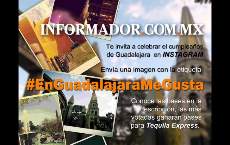 Cultura | Participa con EL INFORMADOR Festeja el aniversario de Guadalajara en una foto Comparte lo que más te gusta de la ciudad desde Instagram, puedes ganar fabulosos premios Por: EL INFORMADOR 1 de febrero de 2013 - 11:44 hs Una visión más amplia de la ciudad / GUADALAJARA, JALISCO (01/FEB/2013).- EL INFORMADOR te invita a participar en el siguiente concurso y compartir lo que más te gusta de Guadalajara que este 14 de febrero cumple 471 años de fundación. La dinámica es muy sencilla: Etapa 1: Del 1 al 10 de febrero comparte en INSTAGRAM, con la etiqueta #EnGuadalajaraMeGusta, imágenes de las expresiones culturales de Guadalajara que más disfrutes; esperamos ver fotos de sitios naturales, lugares históricos, edificios, zonas comerciales, gastronomía, gente etc... Súbela con una breve explicación (en el pie de foto) de por qué prefieren ese lugar y la ubicación exacta. NOTA: Para unificar estas capturas y poder concursar por los premios no dejes de usar el hashtag #EnGuadalajaraMeGusta Etapa 2: El 10 de febrero seleccionaremos las cinco fotos más votadas (con más "me gusta") y las publicaremos en nuestro perfil en Instagram para someterlas a votación hasta el último minuto del 14 de febrero. Los ganadores serán publicados el 15 de febrero por la mañana. Para las mejores imágenes tenemos los siguientes premios: 1er lugar, un pase triple para Tequila Express. (Solo adultos) 2do lugar, un pase doble para Tequila Express. (Solo adultos) 3er lugar, un pase cuádruple (2 adultos, 2 niños) para Zoológico Guadalajara. IMPORTANTE: Los ganadores serán determinados por el número de “me gusta” de las imágenes. Pueden invitar a sus amigos y conocidos a votar por sus fotos. Gracias por participar con nosotros y festejar el cumpleaños de la ciudad Temas Fotografía Artes Visuales Promociones Informador Instagram Lee También Sociales: El Informador inicia una nueva etapa con la moderna imprenta "Doña Stella" El Festín de los Muñecos cumple 20 años; anuncian el cierre de un ciclo Continúa la celebración 108 de EL INFORMADOR Cantos de tierra y exilio: Illapu vuelve a Guadalajara Recibe las últimas noticias en tu e-mail Todo lo que necesitas saber para comenzar tu día Registrarse implica aceptar los Términos y Condiciones