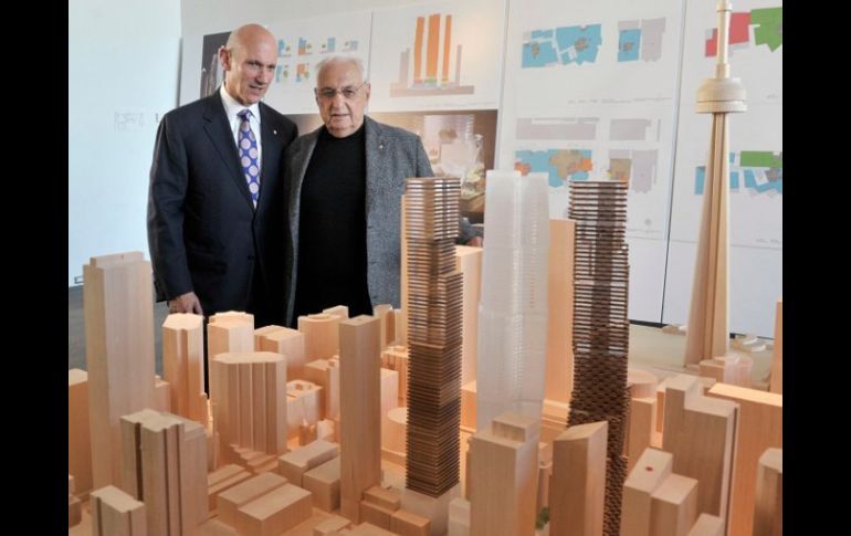 Cultura | Incluirán museos, galerías de arte y una universidad Frank Gehry construirá tres rascacielos en centro de Toronto ''En Bilbao me querían disparar cuando vieron el diseño del Guggenheim y ahora tiene unos ingresos anuales de 500 millones de dólares'' Por: EFE 1 de octubre de 2012 - 13:40 hs El empresario David Mirvish y el arquitecto Frank Gehry contemplan la maqueta de lo que será este nuevo desarrollo. EFE / TORONTO, CANADÁ (01/OCT/2012).- El arquitecto canadiense Frank Gehry anunció hoy que construirá tres rascacielos en el centro de Toronto que incluirán museos, galerías de arte y una universidad pero que eliminarán uno de los teatros más conocidos de la ciudad. Los tres rascacielos, de entre 80 y 85 plantas cada uno, se situarán uno al lado del otro en el llamado "Distrito del Entretenimiento" de Toronto, donde hoy en día se levanta el Teatro Princesa de Gales. Gehry rechazó las críticas que ya ha recibido por el diseño de los tres edificios, que reconoció es provisional, y recordó que el concepto del Museo Guggenheim en Bilbao (España) también fue controvertido. "En Bilbao me querían disparar cuando vieron el diseño del Guggenheim y ahora la ciudad tiene unos ingresos anuales de 500 millones de dólares", dijo Gehry durante la rueda de prensa en la que se presentó el proyecto. "No es un diseño final. En mi trabajo hago alrededor de 50 modelos. Evolucionará pero tendrá este aire", añadió el arquitecto, que nació hace 83 años en Toronto, sobre el diseño presentado hoy. El empresario David Mirvish, cuyo padre construyó el Teatro Princesa de Gales hace 20 años y que es el promotor del proyecto, calificó de "esculturas" los tres edificios y añadió que se "pueden convertir en un símbolo de lo que Toronto puede ser". Anteriormente, Gehry había señalado a través de un comunicado que "con este proyecto quería crear edificios que fueran buenos vecinos para los edificios colindantes y que respetaran la riqueza y diversidad histórica del área". En las cercanías del lugar donde se levantarán los rascacielos se encuentran otras dos instituciones culturales de Toronto, el Teatro Royal Alexandra y Roy Thomson Hall así como la nueva sede del Festival Internacional de Cine de Toronto, el edificio Bell Lightbox. Los planes presentados hoy por Gehry indican que los edificios se erigirán cada uno sobre dos podios de seis pisos que sostienen entre 80 y 85 pisos. Temas Artes Plásticas Canadá Arquitectura Lee También Pequeñas grandes aventuras en las Fiestas de Octubre La UdeG celebra centenario de su refundación con un homenaje a sus figuras destacadas Lista actualizada de selecciones que ya clasificaron al Mundial 2026 Revisión del T-MEC no se definirá a corto plazo: De la Fuente Recibe las últimas noticias en tu e-mail Todo lo que necesitas saber para comenzar tu día Registrarse implica aceptar los Términos y Condiciones