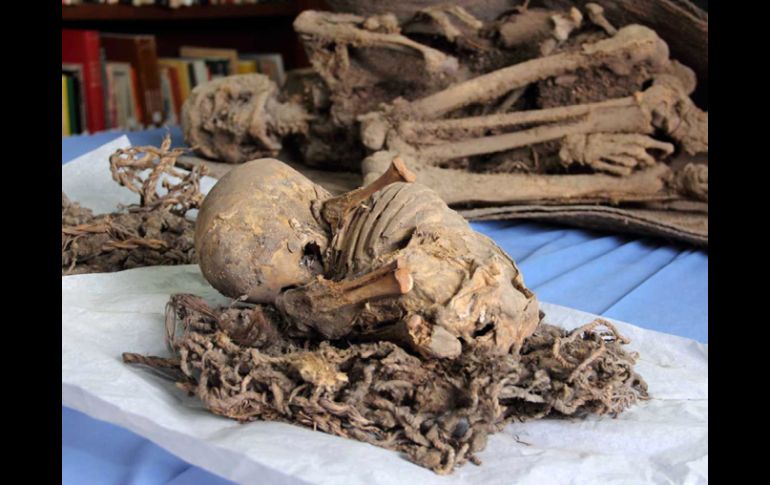 Cultura | Podrían pertenecer a un cementerio prehispánico INAH descubre momias rarámuri en una cueva de Chihuahua Dos cuerpos y un esqueleto con una antiguedad de entre 800 y 1000 años, fueron encontrados en la cueva El Gigante de Chihuahua Por: NTX 1 de agosto de 2011 - 17:34 hs La mayoría de los cuerpos se encontraron en posición fetal. EL UNIVERSAL / CHIHUAHUA, CHIHUAHUA (01/AGO/2011).- Dos cuerpos humanos momificados y un esqueleto de ancestros rarámuri fueron encontrados en la cueva El Gigante, en la sierra Tarahumara, de Chihuahua, y ellos se suman a otros ocho que se descubrieron el año pasado y que pueden ser parte de un cementerio prehispánico. Los arqueólogos del Instituto Nacional de Antropología e Historia (INAH) que descubrieron las momias, explicaron que éstas tienen una antiguedad de entre 800 y 1000 años, que 'la mayoría de los cuerpos se encontraron en posición fetal, y tienen evidencias de que fueron envueltos con mantas de algodón y de fibras vegetales'. En un comunicado se indicó que el arqueólogo Enrique Chacón, a cargo del Proyecto Arqueológico Cueva El Gigante, informó del hallazgo tras la excavación, documentación y registro arqueológico del lugar. Se precisó que los cuerpos humanos encontrados el año pasado fueron descubiertos por tres jóvenes que dieron aviso a las autoridades, las que a su vez notificaron al INAH para hacer peritaje y comenzar la investigación. Esta ha hecho que los especialistas lleguen a decir que este lugar puede corresponder a un cementerio prehispánico, ya que del 2010 al 2011 se han encontrado, en la misma cueva 10 momias y 13 esqueletos. Así, después del registro y levantamiento de los restos humanos, éstos fueron trasladados al Museo Comunitario de Historia Regional 'Abraham González', para posteriormente pasar a la etapa de conservación y análisis, misma que también incluirá a los objetos con que fueron enterrados los antiguos tarahumaras en la cueva. Enrique Chacón adelantó que se realizarán estudios de laboratorio para determinar con exactitud el periodo en el que fueron enterrados los 23 individuos, y el lapso durante el cual el abrigo rocoso fue ocupado como cementerio. Durante varias semanas, el equipo de arqueólogos trabajó en el interior de la cueva, donde se identificaron a por lo menos 23 individuos, de los cuales 10 están articulados, es decir, las extremidades están unidas, y conservan partes con tejido, por lo que se catalogaron como parcialmente momificados, mientras que de los otros 13 personajes sólo se conservaron los esqueletos. Chacón detalló que de la decena de momias tres corresponden a lactantes, y el resto a jóvenes y adultos. Dijo también que a partir de los objetos con que fueron enterrados y la forma en que los colocaron a los individuos, se ha inferido en que deben tener una antiguedad de entre 800 y 1,000 años; es decir, que la cueva pudo utilizarse como cementerio alrededor de 1000 ó 1200 d.C. Asimismo añadió que 'pensamos que los individuos fueron depositados sobre el suelo de la cueva, como bultos, y que alrededor se les colocaron sus ofrendas, después fue tapada la entrada con un muro; con el tiempo la tierra, el polvo y la hojarasca fueron sepultando los restos humanos. La condición seca de la cueva y el clima estable ayudó a que los restos se preservaran, y (así) se dio una momificación natural' Sin embargo, puntualizó que los cuerpos no permanecieron intactos desde que fueron enterrados, 'hay rastros de que algunos se removieron por lo menos en dos ocasiones, quizá por animales, lo cual propició que algunos cuerpos se conservaran mejor que otros, y que unos se momificaran y otros no'. El arqueólogo también comentó que al hacer un comparativo a través de la literatura etnográfica y por reportes de trabajos sobre cementerios prehispánicos en la Sierra de Chihuahua, se ha concluido se trata de un cementerio tarahumara, pero será con el fechamiento por ADN e isótopos, a practicarse en los cuerpos momificados, como se confirmará la filiación cultural. En cuanto a los objetos encontrados, en la excavación de 2010 se halló una coa prehispánica que se utilizó para el cultivo, un cesto tejido sin diseños, dos cucharones de guaje y varias semillas de chilicote, que es una variedad de frijol silvestre, además de fragmentos de las mantas y cordeles con que envolvieron los restos mortales. Mientras que en 2011 se hallaron más fragmentos de mantas, chilicotes, cuentas de concha y de hueso, algunas ensartadas en collares, así como una punta de proyectil completa y un fragmento de otra, pedazos de cerámica, un recipiente y un pendiente de turquesa. Enrique Chacón también recordó y destacó una de las leyendas de este lugar al encontrar entre las ofrendas semillas de chilicote, y que, de manera mítica, conecta al cementerio prehispánico con un gigante. 'La gente refiere que en las cuevas habitaba un hombre de estatura mucho mayor a la normal, al que llamaban Ganoko, quien se comía a los niños de los indígenas; para defenderse, los tarahumaras decidieron envenenarlo, dándole a comer chilicotes; dicen que el gigante se fue a morir a una cueva', contó el especialista. Hasta el momento, prosiguió el arqueólogo, no se han encontrado huesos de ningún ser humano de tamaño anormal, a pesar de que los nativos insisten en la historia, y de que la figura del ser gigantesco está plasmada en distintas pinturas murales dentro de diferentes cuevas de la Sierra Tarahumara. 'Por eso las semillas de chilicote, que estaban colocadas en el cucharón, a manera de ofrenda, son motivo de un estudio más amplio, tendiente a conectar a la arqueología con la etnohistoria, y con ello recuperar la información que guardan las cuevas de la Sierra de Chihuahua', finalizó Chacón. Temas INAH Antropología Hallazgos Lee También México y EU siguen colaboración para recuperar bienes culturales Descubren por qué la gripe es más mortal para las personas 