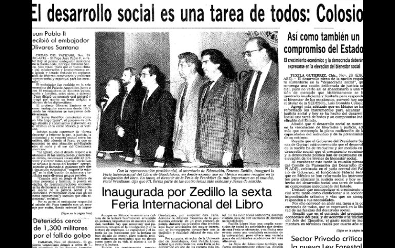 Cultura | Un recuento de la historia de la FIL La historia de La Feria vista a través de las páginas de EL INFORMADOR La feria representa el encuentro literario más importante de América Latina Por: EL INFORMADOR 28 de noviembre de 2011 - 03:57 hs EL INFORMADOR hace un repaso por los ayeres de la FIL. / GUADALAJARA, JALISCO (28/NOV/2011).- 1990.- La misión: dejar clara la presencia latinoamericana en el mundo editorial. Por eso, la FIL, en su cuarta edición, llegó con más de una novedad Incentivan al mundo literario Con la expectativa de fortalecer la presencia de la cultura latinoamericana en el mundo a través de su producción editorial, la cuarta edición de la FIL trajo consigo novedades para robustecer la producción e incentivos en el mundo literario, tales como el anuncio de la instalación del Salón Internacional del Libro Latinoamericano Anual Rotativo, un evento que fortalece las bases culturales de América Latina, y la convocatoria para el Premio Internacional de Literatura Latinoamericana y del Caribe Juan Rulfo, que convirtió a la Feria en referente obligado en el mundo de las letras y abrió la puerta para constituir un espacio privilegiado. Fue creado Video FIL, un foro para la difusión de las producciones principalmente de factura latinoamericana, y se organizó una de las primeras exposiciones importantes en el marco de la Feria: 40 años de diseño gráfico, de Vicente Rojo, además de la muestra El mágico mundo de Fernando del Paso, en el Instituto Cultural Cabañas. Entre los textos presentados “en sociedad” destaca la Colección Escritores de Bolsillo: Arreola, Chumacero, Mondragón, Nandino, Antonio Navarro, V. Sandoval, Torri, Edmundo Valadez y Eracleo Zepeda. Para la ocasión, la Explanada se pintó de Azul Violeta, con olor a Café Tacuba. 1991.- Al quinto año de iniciar el proyecto literario, la Feria logró reunir a más de mil expositores de 980 editoriales. Se entregó el primer Premio Juan Rulfo Inauguran premio Juan Rulfo Con un prestigio cultural sólido y cada vez más amplio, la quinta edición de la FIL logró reunir a más de mil expositores de 980 casas editoriales provenientes de 33 países. En el espacio de la Expo Guadalajara se presentaron más de 60 mil títulos y se desarrollaron 45 presentaciones de nuevos libros. El primer premio Internacional de Literatura Latinoamericana y del Caribe Juan Rulfo, fue entregado al poeta chileno Nicanor Parra, a quien fue dedicada esta quinta edición de la Feria, dando así comienzo a la fiesta de galardones. El programa académico logró consolidar su primera etapa, al tener el Encuentro Internacional de Ciencias Sociales invitados de la talla de Belisario Betancourt, ex presidente de Colombia; Raúl Alfonsín, ex presidente de Argentina; Julio María Sanguinetti, ex presidente de Uruguay; el escritor Eduardo Galeano y el poeta Mario Benedetti. Se realizó el Coloquio de Comunicación, Deporte y Sociedad, además de FIL Niños, que atrajo a más de sesenta mil pequeños al mundo de las letras. La Explanada desbordó con un concierto que incluyó en el cartel a Santa Sabina y Maldita Vecindad. 1992.- Con la presencia del entonces secretario de Educación, Ernesto Zedillo, arrancó la sexta edición de la Feria. Cultura mexicana y estadounidense fueron tema central Primer encuentro de educación La sexta edición de la FIL fue inaugurada por el ex presidente y entonces secretario de Educación Ernesto Zedillo, quien junto con el director de la Feria del Libro de Frankfort (la más importante del mundo), Peter Weidhaas, reconoció a la Feria de Guadalajara como una de las más exitosas. Se desarrolló bajo la temática de las perspectivas culturales entre México y los Estados Unidos. Una de las actividades destacadas fue el Sexto Coloquio Internacional de Bibliotecarios México-Estados Unidos. Se realizó el primer Encuentro Internacional de Educación Abierta a Distancia, y el Segundo Encuentro Anual de Libreros Mexicanos. El carácter internacional del Encuentro de Ciencias Sociales fue refrendado con la presencia del brasileño Frei Betto y James Petras, de Estados Unidos. En los diálogos participaron Jorge G. Castañeda, la investigadora Soledad Loaeza y el ex sandinista Fernando Sandoval. Ese año, Juan José Arreola mereció el premio Juan Rulfo. Siguiendo con el festín de galardones, fue creado el Premio y Homenaje Nacional de Periodismo Cultural Fernando Benítez, para reconocer a los periodistas culturales; el primer homenajeado fue el mismo Benítez. Como parte de las novedades en comunicación, ese año el correo electrónico llegó a la Feria. PremiosLluvia de galardonesLibros, presentaciones, exposiciones, charlas… todo un mundo de posibilidades en los pasillos de la Feria Internacional del Libro de Guadalajara. Pero ahí no acaba. Para los que tienen uno o varios méritos durante su trayectoria, hay una variedad de galardones.Entre ellos está el Premio Sor Juana Inés de la Cruz, el Reconocimiento al Mérito Editorial y el Homenaje al Bibliófilo. También está el Premio FIL de Literatura. Diversión 143,049 Asistentes a FIL Niños se registraron el año pasado. En 2009, la cifra fue de 142 mil 126. Temas Literatura FIL 2011 FIL 25-Especiales Lee También ¿Cuánto cuestan y dónde comprar los libros del Nobel de Literatura 2025? Otorgan Premio Nobel de Literatura al húngaro László Krasznahorkai Colocan a mexicana entre las favoritas para el Nobel de Literatura 2025 FIL recibe el Premio a la Libertad de Expresión de Publicación y de Lectura Recibe las últimas noticias en tu e-mail Todo lo que necesitas saber para comenzar tu día Registrarse implica aceptar los Términos y Condiciones