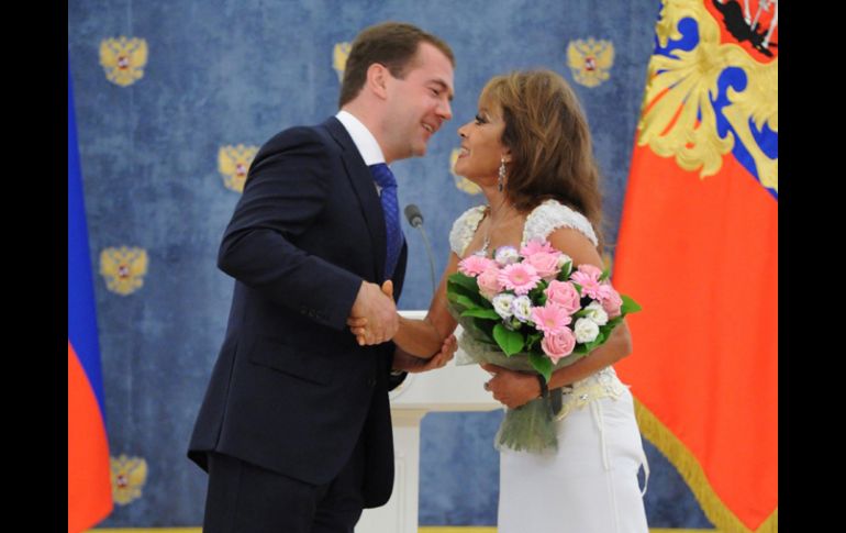 Cultura | Recibe el galardón de manos de Dmitri Medvédev La mexicana Sonia Amelio recibe la medalla Pushkin en Rusia El presidente ruso condecoró con la medalla Pushkin a la bailarina mexicana Sonia Amelio Por: EFE 20 de junio de 2011 - 11:30 hs El presidente ruso Dmitry Medvedev (i), felicita a la bailarina mexicana Sonia Amelio (d). EFE / MOSCÚ, RUSIA (20/JUN/2011).- El presidente ruso, Dmitri Medvédev, condecoró hoy con la medalla Pushkin a la bailarina mexicana Sonia Amelio durante una entrega de galardones a los ciudadanos extranjeros en Moscú. "Es muy grato que el trabajo con Rusia se haya convertido en una parte de vuestro destino", destacó el mandatario ruso al honrar a los laureados de diferentes premios, entre ellos hombres de negocios y personalidades de cultura, por su aportación en la colaboración con Rusia. La bailarina mexicana reveló que está enamorada de Rusia y que esta es su decimoctava visita a Rusia "Me encantaría regresar en mi gira europea de este año para bailar y tocar, que es lo mejor que sé hacer, para poder demostrarle mi emoción, mi agradecimiento y todo mi cariño entrañable a este país, que tanto adoro", confesó Amelio, emocionada. La bailarina pronunció varias palabras en ruso al igual que otros de los laureados. Medvédev recalcó que es "fantásticamente agradable" escuchar cómo hablan ruso quienes estudiaron en Rusia y en otras antiguas repúblicas soviéticas. La medalla Pushkin fue creada en 1999 para premiar a personalidades en el campo de artes y cultura, educación, ciencias humanitarias, así como por aportación en el estudio y conservación de herencia cultural y desarrollo cultural entre las naciones. Entre los laureados de la medalla se encuentran el presidente de la República Checa, Vaclav Klaus, el quinto Secretario General de las Naciones Unidas, Javier Pérez de Cuéllar Guerra, el expresidente chino Jiang Zemin. Temas Artes Escénicas Artes Danza Lee También La UdeG celebra centenario de su refundación con un homenaje a sus figuras destacadas El Festín de los Muñecos cumple 20 años; anuncian el cierre de un ciclo Cantos de tierra y exilio: Illapu vuelve a Guadalajara Un octubre artístico para celebrar los 31 años del MUSA Recibe las últimas noticias en tu e-mail Todo lo que necesitas saber para comenzar tu día Registrarse implica aceptar los Términos y Condiciones