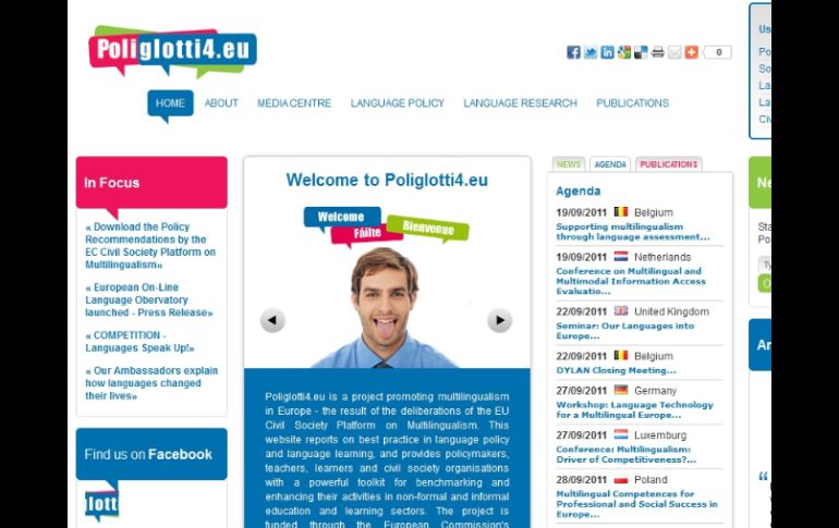 Cultura | Para difundir buenas prácticas de política lingüística y enseñanza de idiomas Nace el observatorio europeo del multilingüismo en internet El proyecto está orientado a estudiantes y profesores de idiomas, los servicios sociales y públicos y a la sociedad civil Por: EFE 19 de septiembre de 2011 - 11:33 hs Poliglotti4.eu es una iniciativa de promoción del multilingüismo en Europa. ESPECIAL / BRUSELAS, BÉLGICA (19/SEP/2011).- Un proyecto sobre multilingüismo cofinanciado por la Unión Europea (UE) ha comenzado hoy su andadura en internet en la página web www.poliglotti4.eu, con la ambición de recopilar y difundir buenas prácticas de política lingüística y enseñanza de idiomas. Poliglotti4.eu es una iniciativa de promoción del multilingüismo en Europa, resultado de las deliberaciones de la Plataforma de la Sociedad Civil de la UE impulsada por la Comisión Europea en 2009. Este portal proporcionará a los políticos, profesores, estudiantes y organizaciones de la sociedad civil un conjunto de herramientas para la evaluación comparativa y la mejora de sus actividades en el sector de la educación y el aprendizaje, informó en un comunicado el Observatorio de Multilingüismo (EUNIC). En concreto, recopilará y mostrará información sobre motivación y objetivos del multilingüismo en varios sectores de la sociedad civil, así como sobre las mejores prácticas y herramientas para su desarrollo. El proyecto está orientado a estudiantes y profesores de idiomas, los servicios sociales y públicos y a la sociedad civil, así como a los responsables del desarrollo de las políticas de multilingüismo. Por el momento, la navegación en la página web es posible en inglés y, más adelante, lo será también en francés y alemán, aunque las aportaciones del público a través de las redes sociales podrán subirse en cualquier idioma. Temas Internet Idiomas Expertos del lenguaje Lee También Internet Bienestar: Pasos para conservar tu número móvil Plataforma de Hulu llegará a México; esto se sabe ¿Cómo funciona la dieta cognitiva? ¿Cómo puedo descargar mi recibo de luz de CFE? Recibe las últimas noticias en tu e-mail Todo lo que necesitas saber para comenzar tu día Registrarse implica aceptar los Términos y Condiciones
