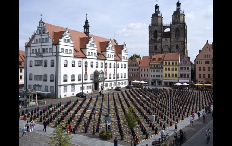 Cultura | Lutero pasó la mayor parte de su vida en Wittenberg Ochocientas estatuas de Martín Lutero adornan plaza alemana Quedará expuesta en ese lugar hasta el 12 de septiembre, en espera de compradores y visitantes Por: EFE 14 de agosto de 2010 - 09:52 hs Las esculturas del artista Ottmar Hörl se organizan en la plaza del mercado en Wittenberg, Alemania. AP / BERLÍN, ALEMANIA (14/AGO/2010).- Un total de 800 estatuas de plástico de Martín Lutero, obra del artista alemán Ottmar Hörl, buscan comprador a 250 euros la unidad (319 dólares), desde su emplazamiento ante Ayuntamiento de Wittenberg (este de Alemania), la ciudad donde el teólogo clavó sus 95 tesis, fundamento de la reforma protestante. La instalación formada por las estatuas, de diversos colores y 98 centímetros de alto, fue oficialmente inaugurada hoy y quedará expuesta en ese lugar hasta el 12 de septiembre, en espera de compradores y visitantes. Además de los intereses comerciales, la exhibición pretende llamar la atención sobre el 500 aniversario de la reforma protestante, en 2017. Hasta ahora, han llegado a Hörl unos 250 pedidos, en su mayoría en los días previos a la inauguración, indicaron fuentes de los organizadores. La exhibición ocupa el lugar en que habitualmente se encuentra el monumento a Lutero en esa ciudad, actualmente en proceso de restauración. Martín Lutero (1483-1546) pasó la mayor parte de su vida en Wittenberg, en la puerta de cuya iglesia clavó sus tesis, el 31 de octubre de 1517, consideradas el origen de la reforma protestante. Hörl está especializado en este tipo de instalaciones y el año pasado plantó un total de mil 250 ejemplares de enanitos de jardín mostrando el saludo hitleriano en la plaza mayor de la ciudad bávara de Straubig. El artista pretendía con ello ridiculizar esa ideología, pero hasta lograr su autorización tuvo que sortear varios escollos judiciales, a raíz de las demandas presentadas por la presunta apología del nazismo de sus enanitos. Con sus "Luteros" de colores no ha tenido hasta ahora problemas de este tipo, pero sí críticas, como la del prestigioso teólogo Friedrich Schloremmer, nacido en Wittenberg, quien los ha calificado de "obra de mal gusto" desde el diario regional "Leipziger Volkszeitung". Temas Artes Plásticas Alemania Escultura Lee También Pequeñas grandes aventuras en las Fiestas de Octubre La UdeG celebra centenario de su refundación con un homenaje a sus figuras destacadas La sinfonía teutona suena en Sinsheim El Festín de los Muñecos cumple 20 años; anuncian el cierre de un ciclo Recibe las últimas noticias en tu e-mail Todo lo que necesitas saber para comenzar tu día Registrarse implica aceptar los Términos y Condiciones