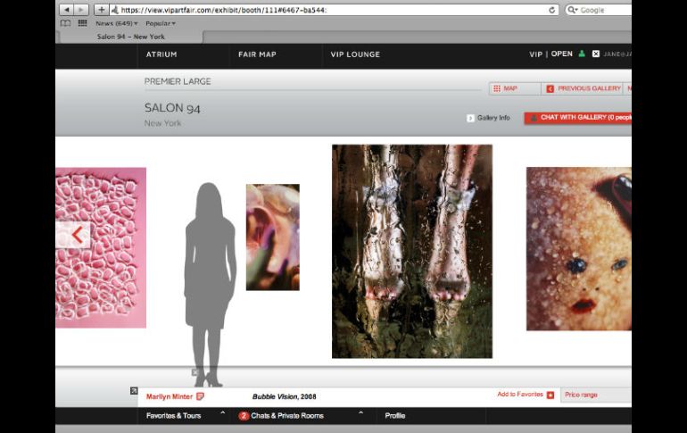 Cultura | Más de 100 galerías de 32 países se han registrado hasta el momento Organizan segunda Feria de arte contemporáneo del mundo, por Internet Este concepto, iniciado en enero pasado bajo el título 'VIP Art Fair', hace uso de la tecnología para generar un mercado 'online' en vivo, donde el cibernauta podrá ver, informarse y comprar obras de arte Por: EL INFORMADOR 30 de septiembre de 2011 - 17:10 hs Los organizadores dijeron que se retomó el modelo de las ferias físicas para tener una audiencia más amplia. ESPECIAL / NUEVA YORK (30/SEP/2011).- Más de 100 galerías de 32 países se han registrado hasta el momento para participar en lo que será la segunda Feria de arte contemporáneo del mundo, que se llevará a cabo exclusivamente por Internet del 3 al 8 de febrero de 2012. Este concepto, iniciado en enero pasado bajo el título 'VIP Art Fair', hace uso de la tecnología para generar un mercado 'online' en vivo, donde el cibernauta podrá ver, informarse y comprar obras de arte de artistas del orbe, cuyos precios varían de entre 500 y hasta un millón de dólares. El director de esta feria, Noah Horowitz, comentó que se retomó el modelo de las ferias de arte físicas y lo abrió para una audiencia mucho más amplia, habilitando la conexión entre la comunidad comprometida con el arte y los 'marchands' más prominentes del mundo. Hasta el momento se han registrado 100 galerías de 32 países para exponer sus obras, entre las que se incluyen adiciones de Latinoamérica y Medio Oriente, superando en mucho el ritmo de la edición pasada. Entre estas galerías están Zwirner (Nueva York), White Cube (Londres), Pace (Nueva York, Beijing), Hetzler (Berlín), Ropac (París, Salzburgo), Fraenkel (San Francisco), Goodman (Nueva York, París) y Hyundai (Seúl). En materia tecnológica, para esta segunda edición se agregarán recursos significativos en servidores y banda ancha, con lo cual podrán satisfacer picos de demanda y brindar una experiencia rica en contenidos para los expositores y visitantes. Además, un nuevo Salón de Museos y Ediciones permitirá a los visitantes comprar ediciones de importantes instituciones internacionales, mientras que la mejora en la integración de las redes sociales invita a los visitantes a sumarse a las conversaciones y compartir sus favoritos. La tecnología admite todos los navegadores, tabletas y dispositivos móviles y conserva funciones populares, entre las que se incluyen Stands y Salón VIP interactivos con una funcionalidad de chat mejorada. Datos estadísticos de la primera feria muestran que una semana de duración atrajo a una audiencia de más de 40 mil visitantes de 196 países, que pasaron más de una hora en el sitio viendo más de 200 obras de arte exclusivas. Temas Internet Artes Plásticas Fotografía Pintura Lee También Plataforma de Hulu llegará a México; esto se sabe El Festín de los Muñecos cumple 20 años; anuncian el cierre de un ciclo Cantos de tierra y exilio: Illapu vuelve a Guadalajara Alberto Anaya Adalid: maestro de la luz en la pantalla Recibe las últimas noticias en tu e-mail Todo lo que necesitas saber para comenzar tu día Registrarse implica aceptar los Términos y Condiciones