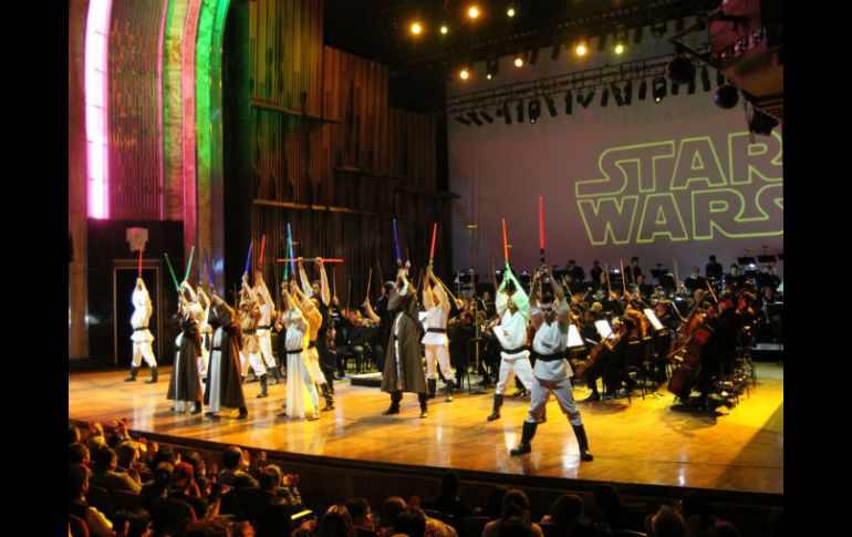 Ante un recinto lleno, la Orquesta Sinfónica Nacional (OSN) ofreció el programa familiar número 4 de su temporada anual de conciertos, rindiendo tributo a los 60 años de trayectoria de Williams.Autor de varias de las más famosas bandas sonoras de la historia del cine como: "Tiburón", "ET: El extraterrestre", "Superman", la saga de películas de "Star Wars", "Indiana Jones", "Parque Jurásico", "La lista de Schindler", por mencionar algunas.Los personajes de esta trilogía concebida por el guionista, director y productor de cine estadounidense George Lucas a finales de la década de los 70, invadieron el máximo recinto cultural del país, donde decenas de fans mexicanos se deleitaron con la presencia de personajes como Darth Vader, Luke Skywalker, Boba Fett, Obi Wan Kenobi, Princesa Leia, Palpatine, Chewbacca y hasta de los Ewoks.Bajo la dirección concertadora de José Arturo González y la escénica de César Piña, el concierto fue parte de la alianza que el Instituto Nacional de Bellas Artes ha hecho con "Érase una vez... Producciones" para dramatizar los conciertos familiares.El público disfrutó por espacio de una hora del trabajo de alrededor de 110 músicos en vivo, acompañados por la proyección de algunas de las escenas de la película, mientras que en el escenario bailarines y actores rindieron un combate escénico.Furor causaron los personajes minutos antes de las 12:00 horas cuando 15 de ellos se hicieron presentes en el vestíbulo principal del recinto, donde chicos y grandes de inmediato comenzaron a retratarlos y retratarse con ellos.Portadores de espadas láser y otros utensilios y armas que aparecen en el filme, los 15 personajes accedieron a todas las peticiones de los fans mexicanos, quienes no se cansaron de retratarse una y otra vez.En el interior, la orquesta ya se encontraba lista para celebrar el primero de dos conciertos este día, los cuales fueron transmitidos vía "streaming" desde la dirección electrónica http://livestream.com/inba, así como en la pantalla gigante colocada en el andador "Angela Peralta", a un costado del máximo recinto cultural de este país.En la sala, varios fanáticos lucieron espectaculares trajes de la Guerra de las Galaxias, los cuales, a su vez, fueron confundidos con los actores que más tarde participarían en el concierto.Al arrancar la gala con el tema de la "Guerra de las Galaxias", una fuerte ovación se dejó escuchar en el recinto y la magia se hizo presente en el escenario con diversos actores caracterizados.El espectáculo incluyó la famosa "Fanfarria de Star Wars", así como el "Tema principal" y el "Tema de la princesa Leia".También se escuchó la "Marcha imperial", conocida como el Tema de "Darth Vader", además de "El campo de asteroides", "Banda de la cantina", "Ellos vienen aquí", "Tema de Yoda", "Desfile de los ewoks", "La batalla en el bosque", "Salón del trono" y la música de los títulos finales, añadió César Pina, también creador de este concepto.Durante el concierto, Jorge Cervantes fue el encargado de narrar cada uno de los temas a interpretar, y junto con el resto de los personajes, recrearon escenas de épicas batallas de los miembros de la República Galáctica contra la Confederación de Sistemas Independientes.La "Suite de Star Wars. Homenaje a John Williams" contó con la participación de los bailarines Indra Alzati, Daniela Fernández, Martín Morales y Ricardo Ayala; los actores Irina Montero, Tehutly López y Gloria Andrade, y de los expertos en combate escénico Mario E. Téllez, Alejandro Olvera, Jorge A. Lozano, César Vázquez, Jorge A. Moreno y Sergio Silva.Al final del concierto, los personajes de este filme volvieron a tomarse fotografías con quienes no pudieron hacerlo minutos antes de la función.
