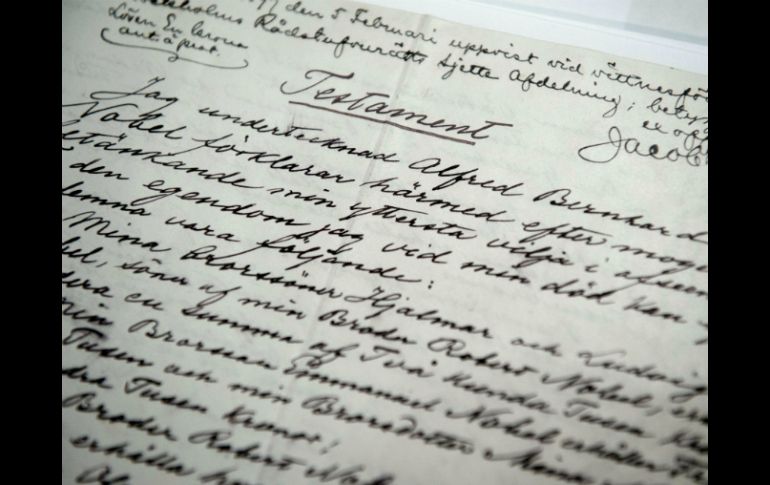 Cultura | En el documento se estableció la creación de los premios que llevan su nombre Testamento de Alfred Nobel se exhibirá por primera vez En el documento se estableció la creación de los premios que llevan su nombre Por: SUN 12 de marzo de 2015 - 19:03 hs En dicho escrito se estipula como distribuir su gran fortuna de casi 220 millones de euros. AFP / J. Gow CIUDAD DE MÉXICO (12/MAR/2015).- El testamento de Alfred Nobel, donde estableció la creación de los premios que llevan su nombre, se exhibe por primera vez al público. El documento forma parte de la exposición que hoy abrió en el Museo Nobel de Estocolmo. Escrito en 1895, en el testamento se estipula que su gran fortuna, casi dos millones de coronas, (220 millones de euros) se distribuyera anualmente como "recompensa a los que, durante el año anterior, hubieran prestado a la humanidad los mayores servicios", indica el diario español Abc. Fue un remordimiento el que impulsó al poderoso industrial a donar su fortuna para la entrega de estos celebres galardones. En 1888, un periódico francés confundió el deceso de su hermano con la suya y tituló el obituario: "El mercader de la muerte ha muerto", aludiendo a que fue el creador de la dinamita y poseía una fábrica de armas. En el documento, Nobel detalla las cuatro áreas entre las que se repartiría su herencia: Ciencias Físicas, Química, Fisiología o Medicina y obra literaria. En 1896 se añadió el de Ciencias Económicas. La quinta parte de sus ingresos sería destinada "a quien haya laborado más y mejor en la obra de la fraternidad de los pueblos, a favor de la supresión o reducción de los ejércitos permanentes, y en pro de la formación y propagación de Congresos por la Paz". La exposición incluye también videos con entrevistas que Alfred Nobel concedió en San Francisco, Nueva York y Estocolmo. Temas Exposiciones Premios Nobel Patrimonio Lee También Portada: Dr. José Magaña, embajador de Arkana México László Krasznahorkai: Libros para adentrarse al mundo del nuevo Nobel de Literatura Esta es la última guerra que Trump resolvió, según él mismo Las guerras que Trump dice haber resuelto y por las que merece el Nobel Recibe las últimas noticias en tu e-mail Todo lo que necesitas saber para comenzar tu día Registrarse implica aceptar los Términos y Condiciones