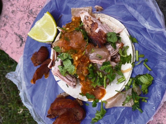 Todos tenemos algún placer culposo, que para algunos va más allá de la salud y para otros es solamente entregarse a los placeres culinarios.A sugerencia de mi buen amigo @buendientegdl hoy estuvimos en el puesto callejero llamado Carnitas Estilo Michoacán; es un espacio donde desde temprano hacen sus propias carnitas, en un enorme cazo. Venden tacos a $16 pesos, kilos $260 pesos, cuartos de kg a $65 pesos y ordenes de $50 pesos. Ordené tacos combinados de maciza y costilla, coronados con un chicharrón, así me lo sugirió mi amigo.Cuando estés en Roma, haz lo que hacen los romanos.Al ordenarlos, después de seguir una fila que en la espera parecía interminable, llegas frente al taquero, que a un lado tiene el gran cazo, y le pides de qué querrás tu taco, él busca en su colador la carne solicitada y si no la encuentra, navega por el cazo para sacar lo solicitado.Una vez en mano, la pone en una gruesa tabla, las típicas de medio tronco que les dura toda la vida. Y parte tu carne frente a ti y te prepara los tacos con tortilla doble, que logras sortear en el primer taco pero en los siguientes sí es necesaria para que no se rompa el taco. La carne estaba en su punto y un pequeño dulzor al final. Tierna y muy jugosa al morderla (¡ya si no, la sacan escurriendo!).La combinación de encontrarte el chicharrón a media mordida con diferentes capas de sensación, hace que el encuentro de las texturas sea glorioso y vengan a tu mente las sensaciones de aquellos platillos que han marcado tu vida.De acompañantes tienen varias salsas con diferente nivel de picor. Yo opté por la más picante; la última, en las salsas está el secreto taquero. Son cuatro diferentes desde pico de gallo, chipotle, chile verde y una sin picante. Así mismo; cilantro, cebolla en picada y corte pluma.Platiqué con dos personas de Michoacán ahí. Dijeron que el sabor es igual al de las que preparan allá. Para una era la primera vez que los probaba (por un post de @buendientegdl) y para el otro, de Zamora, era la rutina sabatina. Lo que me acercó más al verdadero sabor purépecha.Al terminar mi manjar, no pude no voltear a ver nuevamente la fila que seguía larga, los formados tenían esa sonrisa que he visto solo en los trabajadores de la construcción los sábados al recibir su raya, ¡vaya manera de hacer cola de una manera feliz!Tienen una gran variedad de carne; maciza (que ellos llaman maciza), surtida, buche, cuerito de panza, lengua, oreja, trompa, costilla, nana e hígado. Pero en realidad yo vi todo el marrano completo en el cazo, creo que lo ponen por mencionar algunas sugerencias más bien.Por último quiero describirles el mejor chicharrón que he probado en mi vida, con una consistencia seca y muy firme y un crunch como de dorito, son pequeñas piezas, que dicho está ni te cobran si solo las pides para acompañar tu taco, con una sazón saladita y un poco de carne al fondo bien dorada y súper crujiente, sin rival alguno. ¡Se feliz!Jalisciense nacido en Hermosillo, Sonora, hace 50 años; ha perfeccionado el paladar desde su niñez, gracias a la influencia de su madre en los artes del buen comer y a su empeño por encontrar nuevos sabores en los rincones más íntimos del planeta, las mejores experiencias culinarias.Hoy en día se ha vuelto un crítico muy peculiar y constructivo, comunicando y realzando lo más bueno. Hay personas que comemos de todo y podemos decir “me gusta o no me gusta” pero la ventaja del paladar de @superchofo al tener tantos conocimientos gastronómicos acerca de las preparaciones y elaboraciones, expresa lo que pocos pueden. Por muchas cosas más, @superchofo es un magnífico integrante en cualquier grupo de glotones. Si necesitan alguna información de restaurante, local o puesto, él es una persona que sabrá orientarlos.AC