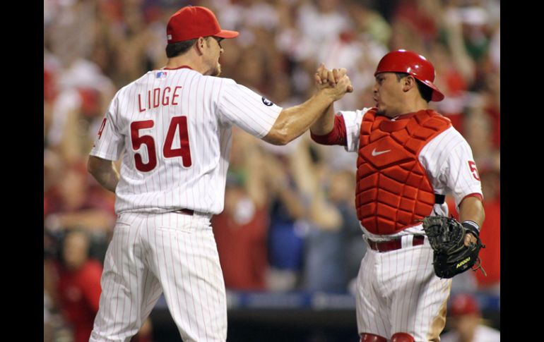 Deportes | Carlos Ruiz impulsa la carrera de la victoria 11 triunfos consecutivos para los Filis Filis de Filadelfia, líderes de la Este de la Nacional, ganaran su 11mo partido consecutivo al vencer 3-2 a los Mets de Nueva York Por: AP 24 de septiembre de 2010 - 20:33 hs Carlos Ruiz (izq) festeja con el lanzador Brad Lidge el triunfo ante los Mets. EFE / FILADELFIA, PENSYLVANNIA (24/SEP/2010).- El panameño Carlos Ruiz remolca la carrera decisiva y Joe Blanton lanzó siete sólidas entradas para que los Filis de Filadelfia, líderes de la Este de la Nacional, ganaran su 11mo partido consecutivo al vencer 3-2 a los Mets de Nueva York. Los Filis redujeron su número mágico para hacerse de su cuarto título divisional a tres juegos con ocho por jugar, y están pendientes del partido de Atlanta en Washington. La racha es la más larga para Filadelfia desde que ganaron 13 al hilo en 1991. Blanton (8-6) permitió dos carreras y seis imparables; ponchó a seis. Ryan Madson trabajó una octava perfecta y Brad Lidger terminó para obtener su 27mo salvamento en 33 oportunidades. R.A. Dickey (11-8) cedió tres carreras, dos limpias, y ocho hits en seis episodios. El puertorriqueño Angel Pagán puso la pizarra 2-2 con un cuadrangular en la parte alta del cuarto inning. Los Filis tomaron la delantera definitiva en la parte baja luego de que Raúl Ibáñez conectara un sencillo, se robara segunda y alcanzara el plato con un sencillo de Ruiz. Por los Mets, el dominicano José Reyes de 4-0. Los puertorriqueños Pagán de 4-1 con una carrera anotada y dos remolcadas; Jesús Feliciano de 1-0; y Carlos Beltrán de 3-0. El panameño Rubén Tejada de 2-0. Por los Filis, los dominicanos Plácido Polanco de 4-2; y Wilson Valdez de 3-1 con una carrera anotada. El panameño Carlos Ruiz de 3-1 con una carrera remolcada. Temas Beisbol MLB Filis de Filadelfia Recibe las últimas noticias en tu e-mail Todo lo que necesitas saber para comenzar tu día Registrarse implica aceptar los Términos y Condiciones
