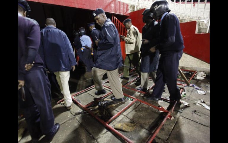 Deportes | La estampida humana fue provocado por seguidores de las dos escudras Gor Mahia y AFC 7 hinchas mueren en partido de futbol en Kenia La estampida humana fue provocado por seguidores de las dos escudras Gor Mahia y AFC Leopards al tratar de acceder al estadio Por: AP 23 de octubre de 2010 - 15:30 hs Policía inspecciona la escena en donde sucedió la estampida humana en el estadio nacional de Nyayo, en Nairobi, Kenia. EFE / NAIROBI, KENIA (23/OCT/210).- Siete personas murieron en una estampida humana al tratar de entrar a un partido de futbol entre dos de los clubes más populares de Kenia, informó el sábado la Cruz Roja del país. Taitus Mong Mungou, dirigente de la Cruz Roja, indicó que seis personas fallecieron en el estadio Nacional Nyayo y otra en el hospital nacional Kenyatta. El encuentro por la liga Premier de Kenia entre Gor Mahia y AFC Leopards continuó. Temas Futbol Internacional Kenia Lee También Organismo internacional prevé tensión comercial a nivel global en 2026 Futbol hoy 12 de octubre de 2025: ¿Dónde ver los partidos en vivo? Nos quedamos con sensaciones cortas: Eduardo Arce Hay jugadores que no estuvieron a la altura: Javier Aguirre Recibe las últimas noticias en tu e-mail Todo lo que necesitas saber para comenzar tu día Registrarse implica aceptar los Términos y Condiciones