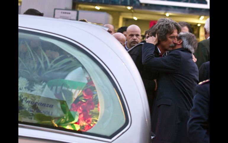 Deportes | El jueves se celebrará el funeral del motocilista italiano Abrirán capilla para público con restos de Marco Simoncelli El jueves se celebrará el funeral del motocilista italiano Por: EFE 25 de octubre de 2011 - 08:23 hs El padre del motoclista, Paolo Simoncelli, es consolado por el presidente del Comité Olímpico Italiano. AP / ROMA, ITALIA (25/OCT/2011).- Los restos mortales del piloto italiano de MotoGP Marco Simoncelli llegaron hoy a Coriano, lugar de residencia de su familia, donde mañana abrirá al público la capilla ardiente y el jueves se celebrará el funeral. Los familiares de Simoncelli, de 24 años, podrán darle hoy en privado su último adiós y mañana se abrirá al público desde las 9.00 hasta las 22.00 horas la capilla ardiente, que será instalada en el Teatro de la localidad. El jueves se celebrará en privado el funeral del piloto, que falleció este domingo en un accidente durante el Gran Premio de Malasia de MotoGP. El avión con el cuerpo del piloto llegó esta mañana al aeropuerto de Fiumicino, después de que ayer se le hiciese una autopsia para determinar las causas de su muerte. En el avión viajaban el padre de Simoncelli, Paolo, que apareció visiblemente emocionado, su novia, Kate Fretti, y el también piloto y amigo Valentino Rossi. El féretro fue recibido con un sentido aplauso por parte de los trabajadores del aeropuerto romano, que se concentraron en la pista para dar el último saludo al piloto. También le esperaba el presidente del Comité Olímpico Italiano (CONI), Gianni Petrucci, que expreso el pésame al padre del piloto en nombre del mundo del deporte. Temas Motociclismo Moto GP Muerte de Famosos Lee También ¿De qué murió la actriz Diane Keaton? Fede Dorcaz es despedido con emotivo mensaje de su novia Mariana Ávila Fallece influencer Fede Dorcaz en presunto intento de robo en la CDMX Angelina Jolie exige compensación a Brad Pitt Recibe las últimas noticias en tu e-mail Todo lo que necesitas saber para comenzar tu día Registrarse implica aceptar los Términos y Condiciones