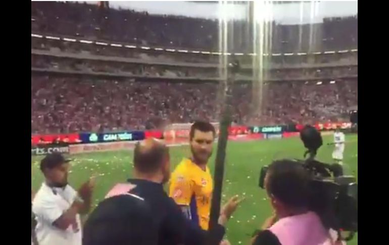 GUADALAJARA, JALISCO (29/MAY/2017).- El respetado André-Pierre Christian Gignac no sólo perdió el campeonato, sino que, al parecer, también los estribos. Un video que circula desde anoche muestra cómo confronta a un reportero al final del partido contra Chivas.En las imágenes se muestra a Gignac cuando, al final del partido, vuelve al campo a esperar la salida de sus compañeros y pasa junto a reporteros; sin que esté claro cómo se dio la escena, se ve que discute con uno de los comunicadores durante unos segundos; se retira y segundos después vuelve, sigue la discusión y, finalmente, al salir, Gignac le lanza agua de una botella al involucrado.El video se convirtió en tendencia esta mañana en redes sociales y los usuarios de Twitter que lo comentan discuten qué sucedió efectivamente; otros señalan que la empresa en la que trabaja el reportero ya habría solicitado el video de lo sucedido, para aclarar los hechos. En la misma red social, quien es identificado como el reportero implicado publicó un mensaje para lamentar la conducta del delantero francés.Gignac fue criticado por otras conductas tras perder anoche el campeonato; entre otras, no acompañó a los demás jugadores de Tigres al recibir las medallas de subcampeones.