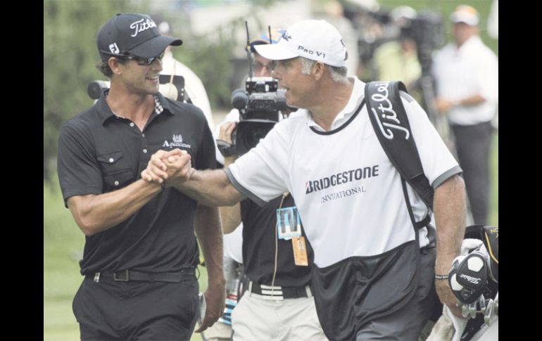 Deportes | Bridgestone Invitational Adam Scott y ex caddie de Tiger Woods logran el título El golfista australiano gana por cuatro golpes sobre Rickie Fowler y Luke Donald Por: AP 8 de agosto de 2011 - 01:08 hs El australiano Adam Scott y su nuevo caddie, Steve Williams celebran el triunfo conseguido en Akron, Ohio. AP / AKRON, OHIO (08/AGO/2011).- Adam Scott ganó el domingo su primer Campeonato del Mundo de golf con un caddie que ha sido parte de bastantes más. El golfista australiano embocó un putt de poco más de nueve metros (30 pies) y logró dos birdies en tres hoyos para alejarse del joven de 19 años Ryo Ishikawa y ganar el torneo de Bridgestone Invitational de la PGA Tour. Scott cerró con una ronda de 65 golpes, cinco bajo par, para sumar 263, y llenó de sonrisas a su caddie, Steve Williams, a quien Tiger Woods despidió el mes pasado después de 12 años juntos. Williams estuvo con Woods en 16 títulos mundiales, incluidos siete en el campo Firestone. Scott ganó por cuatro golpes sobre Rickie Fowler y Luke Donald. Ishikawa cometió bogey en el último hoyo para empatar en la cuarta posición, su mejor final en Estados Unidos. Woods completó su primer torneo en cuatro meses con una ronda final de 70 golpes, en el par del campo, para terminar en la mitad de la tabla. Incurrió en doble bogey en el sexto hoyo, pero hizo dos birdies en los tres últimos para terminar el certamen con 281 golpes, uno sobre par. La última vez que el ex número uno finalizó un torneo fue su empate por el cuarto puesto en el Masters en abril. Había jugado por última vez el 12 de mayo, cuando se retiró del Players después de nueve hoyos con lesiones en una pierna que le impidieron participar en dos torneos mayores. Su próxima participación será en el PGA Championship, el último Major del año. Temas Golf PGA Recibe las últimas noticias en tu e-mail Todo lo que necesitas saber para comenzar tu día Registrarse implica aceptar los Términos y Condiciones