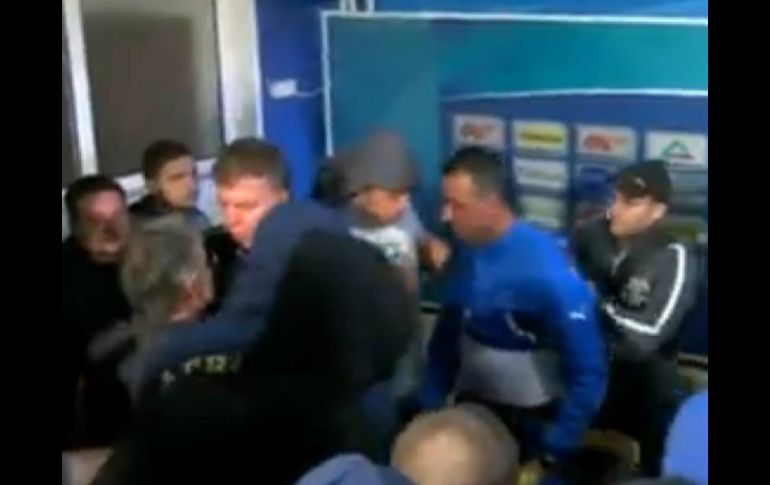 Deportes | Fanáticos del Levski de Sofía obligan a su técnico a abandonar su presentación Aficionados en Bulgaria corren a su entrenador Fanáticos del Levski de Sofía obligan a su técnico a abandonar su presentación Por: EFE 8 de octubre de 2013 - 11:07 hs SOFÍA, BULGARIA (08/OCT/2013).- Un grupo de 30 fanáticos del Levski de Sofía invadió la rueda de prensa en la que estaba siendo presentado el nuevo técnico, Ivaylo Petev, y le obligaron a quitarse la camiseta del club y a abandonar la sala. "Quítate la camiseta o te la quitamos nosotros", amenazaron los aficionados al nuevo entrenador, al que finalmente arrancaron la camiseta y le empujaron entre insultos fuera de las estancia del estadio donde se celebraba su primer acto público como entrenador. El ataque, producido ante numerosos periodistas y cámaras, se ha debido a una reciente entrevista en la que Petev se reconocía aficionado del CSKA, el eterno rival del Levski. Además, parte de la hinchada se ha sentido molesta porque no se le haya consultado el cambio de entrenador. Petev, que ganó la Liga búlgara la pasada temporada con el Ludogoretz, sustituye al serbio Slavisa Jokanovic, que ha sido destituido tras sólo dos meses en el puesto debido a los malos resultados del equipo. Una hora después de este incidente, los directores técnicos del Levski, Ivo Tonev, y Nasko Sirakov, anunciaron su dimisión. Según los medios búlgaros, el club no ha aclarado aún si Petev siguen siendo el entrenador o si la firma del contrato se iba a producir tras la fallida presentación de hoy. Temas Futbol Internacional Escándalos de deportistas Recibe las últimas noticias en tu e-mail Todo lo que necesitas saber para comenzar tu día Registrarse implica aceptar los Términos y Condiciones