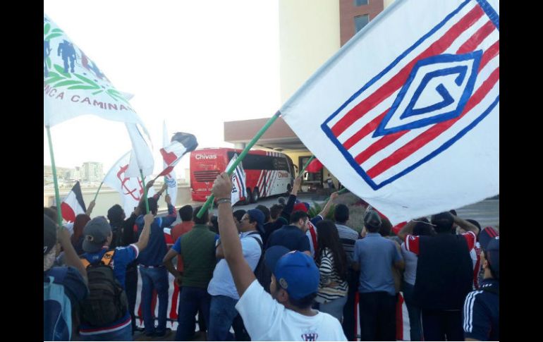 GUADALAJARA, JALISCO (01/NOV/2016).- Chivas llegó esta tarde a Querétaro, donde disputará mañana la Final de Copa MX ante los Gallos Blancos en el Estadio Corregidora.El Deportivo Guadalajara pasará la noche hoy en Querétaro, donde, de acuerdo al reporte de nuestro enviado, Alejandro Ramírez, el equipo ha reservado un piso completo de un hotel para concentrarse.A su llegada, el equipo fue recibido por un nutrido grupo de aficionados que ondeaban banderas rojibancas y entonaban cánticos apoyando al equipo.Esta tarde, a las 18:30 ambos equipos enviarán representantes para declarar ante la prensa previo a la Final de Copa MX de mañana, que se jugará a las 20:00 horas, horario del centro de México.