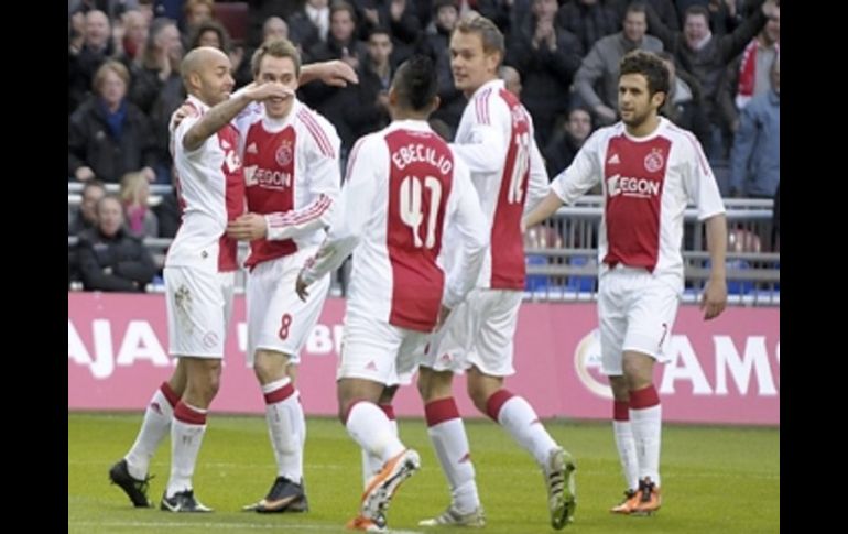 Deportes | El AZ Alkmaar fue goleado 4-0 por el Ajax en duelo de la Liga de Holanda Ajax cumple y acecha al PSV y Twente El AZ Alkmaar fue goleado 4-0 por el Ajax en duelo de la Liga de Holanda Por: EFE 6 de marzo de 2011 - 11:43 hs Los jugadores del Ajax festejando la victoria. ESPECIAL / AMSTERDAM, HOLANDA (06/MAR/2011).- El Ajax cumplió y goleó al AZ Alkmaar (4-0) para prolongar el acoso al PSV Eindhoven y el Twente, dominadores de la Liga de Holanda y que sacaron adelante el sábado sus compromisos de la vigésima sexta jornada. Demy de Zeeuw, Siem de Jong, Lorenzo Ebicilio y Vurnon Anita firmaron los tantos del Ajax, tercero a dos puntos del Twente y a cinco del PSV. El Groningen, por su parte, salió malparado de la visita del Heracles Almelo (1-4). Dos goles del sueco Samuel Armenteros y otros dos del brasileño Ramos Da Silva Everton, proporcionaron el triunfo visitante. Luc Castaignos, a un cuarto de hora del final, dio los tres puntos al Feyenoord ante el Heerenveen (0-1), mientras el Utrecht y el Roda empataron a un gol. . Resultados de la 26a. jornada: Groningen 1 - Heracles Almelo 4 Utrecht 1 - Roda Kerkrade 1 SC Heerenveen 0 - Feyenoord Rotterdam 1 Ajax Amsterdam 4 - AZ Alkmaar 0 . Sábado De Graafschap 2 - Willem II Tilburg 1 (viernes) Twente Enschede 2 - NAC Breda 0 La Haya 5 - NEC Nimega 1 Vitesse Arnhem 2 - VVV Venlo 0 Excelsior Rotterdam 2 - PSV Eindhoven 3 Temas Futbol Internacional Liga de futbol Holandés Lee También ¿Dónde ver Argentina vs Colombia: semifinal del Mundial Sub-20? Calendario de partidos de la J13 del Apertura 2025 “Vainilla”, esencia femenina que atrapa las miradas del FICM Hirving Lozano confía en el proceso del Tri Recibe las últimas noticias en tu e-mail Todo lo que necesitas saber para comenzar tu día Registrarse implica aceptar los Términos y Condiciones