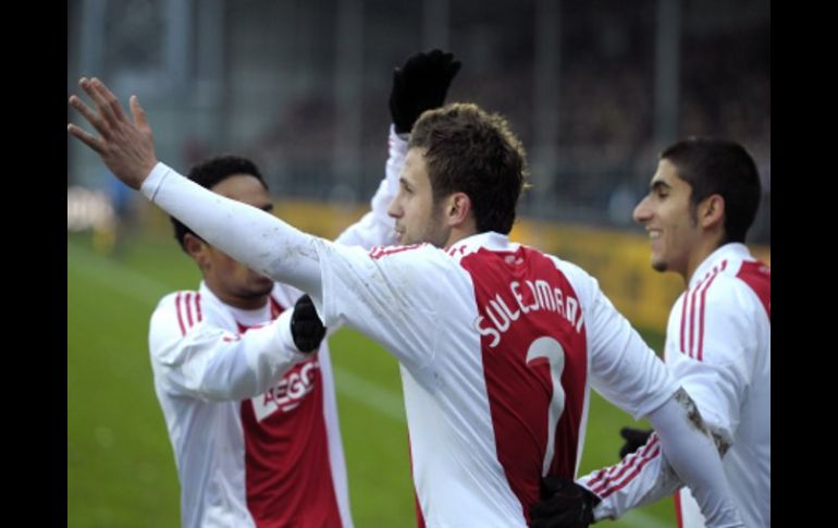 Deportes | Tras recibir goliza del Real Madrid el conjunto holandés triunfa ante Venlo Ajax se reencuentra con la victoria Tras recibir goliza del Real Madrid el conjunto holandés triunfa ante Venlo Por: EFE 28 de noviembre de 2010 - 12:21 hs Miralem Sulejmani f festeja con sus compañeros el que anotó con el cual el Ajax seela la victoria. AFP / VENLO, HOLANDA (28/NOV/2010).- El Ajax, goleado por el Real Madrid en la Liga de Campeones, se rehizo en el reencuentro con la Liga de Holanda y ganó a domicilio al Venlo (0-2), en el partido de la decimosexta jornada, en la que el Vitesse del español Albert Ferrer sacó, ante el De Graafschap, un nuevo punto. El atacante egipcio Mido encarriló la victoria del Ajax pasada la hora de partido. Minutos después, el serbio Miralem Sulejmani sentenció el choque que deja al cuadro de Amsterdam a tres puntos del liderato que comparten el PSV Eindhoven y el Twente. Mientras, el Vitesse empató a domicilio. El etíope Youssouf Hersi adelantó al De Graafschap a los veinte minutos. Cuatro más tarde, Wiljan Pluim obtuvo la igualada para el conjunto de Albert Ferrer, que empieza su escalada y fuga de la parte baja de la clasificación. En el resto de encuentros del domingo, el Feyenoord ganó al La Haya (21) y el Heracles al Utrecht (2-1). - Resultados de la 16a. jornada: De Graafschap 1 - Vitesse Arnhem 1 Feyenoord 2 - La Haya 1 Heracles Almelo 2 - FC Utrecht 1 VVV Venlo 0 - Ajax Amsterdam 2 . Sábado: NAC Breda 4 - PSV Eindhoven 2 (viernes) AZ Alkmaar 2 - SC Heerenveen 2 Roda Kerkrade 1 - Groningen 0 Willem II Tilburg 1 - Excelsior Rotterdam 1 NEC Nimega 2 - Twente Enschede 4 Temas Futbol Internacional Liga de futbol Holandés Recibe las últimas noticias en tu e-mail Todo lo que necesitas saber para comenzar tu día Registrarse implica aceptar los Términos y Condiciones