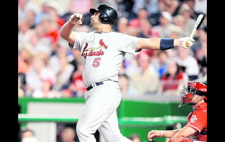 Deportes | Astros barre la serie contra Filis Albert Pujols llega a 400 jonrones El dominicano se ha convertido en el cuadragésimo séptimo bateador en en llegar a los cuatro centenares de vuelacercas Por: EL INFORMADOR 27 de agosto de 2010 - 01:55 hs Albert Pujols conectó su tablazo ante Washington. AFP / WASHINGTON, ESTADOS UNIDOS (27/AGO/2010).- El dominicano Albert Pujols conectó el jueves su jonrón número 400 y se convirtió en el bateador número 47 de las Grandes Ligas que llega a ese hito. El cañonero de los Cardenales de San Luis abrió la cuarta entrada del partido contra los Nacionales de Washington y encontró una recta de Jordan Zimmermann, con cuenta de 0-1, para enviar la pelota a las butacas, entre el jardín derecho y el central. Pujols es el tercer bateador más joven en llegar a los 400 vuelacercas. Su leñazo rompió un empate en el número de cuadrangulares con Al Kaline y con el venezolano Andrés Galarraga, para que Pujols quedara en el lugar 47 entre los mejores jonroneros de la historia. En cuanto completó su swing, Pujols, de 30 años, se quedó contemplando el vuelo de la pelota. Sus compañeros se arremolinaron a él cuando llegó a la caseta de su equipo. Astros barre la serie de cuatro partidos contra Filis, y en Filadelfia El panameño Carlos Lee empalmó un jonrón solitario y remolcó dos carreras el jueves en el triunfo de los Astros de Houston por 5-1 sobre los Filis de Filadelfia. Lee conectó de vuelta completa en el tercer episodio contra el abridor Kyle Kendrick (8-7) y también impulsó al dominicano Anderson Hernández con un doblete en la primera entrada. El abridor dominicano Wandy Rodríguez (10-12) trabajó siete buenas entradas por los Astros, que por primera vez en 11 años barrieron una serie de cuatro partidos en Filadelfia. Houston es el único equipo de la Liga Nacional con récord ganador (30-16) contra Filadelfia desde 2004. Temas Beisbol MLB Cardenales de San Luis Recibe las últimas noticias en tu e-mail Todo lo que necesitas saber para comenzar tu día Registrarse implica aceptar los Términos y Condiciones