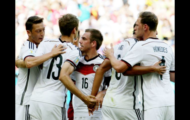 Deportes | Los Germanos golean 4-0 al equipo de Cristiano Ronaldo Alemania aplasta a Portugal en debut mundialista Los Germanos golean 4-0 al equipo de Cristiano Ronaldo Por: EL INFORMADOR 16 de junio de 2014 - 11:51 hs Los alemanes tuvieron una actuación brillante y encantaron a la tribuna. AFP / GUADALAJARA, JALISCO (16/JUN/2014).- Con tres goles de Thomas Müller y un 'pilón' de Mats Hummels, Alemania arrolló a Portugal en uno de los partidos estelares del Mundial Brasil 2014. Desde los primeros minutos del encuentro, los lusos desconfiguraron su estrategia cuando el árbitro serbio Milorad Mazic marcó un penal a favor de Alemania poniendo las condiciones para el primer tanto del partido. Todavía en el primer tiempo, Portugal tuvo otro descalabro al minuto 36 al tener que jugar con un hombre menos tras la expulsión de Pepe por una acción contra Müller. También fueron criticadas las actuaciones del portero Rui Patricio y la salida por lesión de Hugo Almeida. Temas Futbol Internacional FIFA Selección de Portugal Selección de Alemania Mundial Brasil 2014 Recibe las últimas noticias en tu e-mail Todo lo que necesitas saber para comenzar tu día Registrarse implica aceptar los Términos y Condiciones