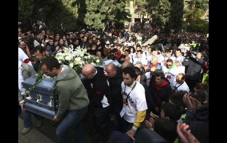 Deportes | Seguidores del piloto también acudieron a mostrar sus respetos Amigos y familiares dan su último adiós a Simoncelli Seguidores del piloto también acudieron a mostrar sus respetos, junto a los familiares, amigos y la novia del piloto Por: EFE 27 de octubre de 2011 - 09:55 hs Gente cercana del piloto Moto GP porta su ataúd a su llegada a la iglesia de Coriano. EFE / ROMA, ITALIA (27/OCT/2011).- Familiares y amigos de Marco Simoncelli participaron hoy en el funeral del piloto Marco Simoncelli en la iglesia de Santa María de la Asunción de Coriano, costa adriática italiana, que fue oficiado por el obispo de Rímini, Francesco Lambiasi. Junto a los familiares del piloto, fallecido durante el Gran Premio de Malasia el pasado domingo, se encontraba su novia, Kate, así como destacados nombres del mundo del motociclismo como Valentino Rossi, gran amigo de Simoncelli, el también italiano Loris Capirossi, el francés Randy De Puniet y los españoles Jorge Lorenzo y Sete Gibernau. Asimismo, acudió a dar el último adiós al piloto Fausto Gresini, director del equipo en el que corría Simoncelli, junto con representantes de la casa japonesa Honda. Cientos de personas recibieron los restos mortales de Simoncelli con un clamoroso aplauso a su llegada a la iglesia, donde se ofició el funeral. El féretro de "Supersic", como se conocía cariñosamente al piloto, estuvo escoltado por un grupo de jóvenes que vestían monos de motociclista y que portaban globos con el número 58 con el que corría el italiano. Por otro lado, más de un millar de personas se reunieron a partir de las 15.00 hora local (13.00 GMT), hora de inicio de la ceremonia, en el circuito de Misano Adriatico, cerca de Rímini, para seguir el funeral a través de las pantallas instaladas para la ocasión. Desde que los restos mortales de Simoncelli llegaron a Italia el pasado martes, se han sucedido las muestras de cariño en recuerdo del piloto. Durante la jornada del miércoles, miles de personas acudieron a la capilla ardiente instalada en el Teatro Municipal de Coriano, donde residía la familia de Simoncelli, para despedir al piloto. En el interior del teatro se colocaron dos de las motos que condujo el campeón: la Gilera 250 con la que ganó el Mundial de 2008 y la Honda que había usado este año en MotoGP y en el fondo del teatro se proyectó una gran fotografía donde se le veía sonriente, como todos esperan recordarle. En Coriano, los aficionados tapizaron la fachada del teatro con carteles donde se leen mensajes de adiós y de luto, para "Supersic". Temas Accidentes deportes Motociclismo Moto GP Lee También Choque en la colonia Aldama Tetlán deja dos lesionados Cierran dos tramos de avenida Juárez por caída de un poste y de ramas Bebé sobreviviente a explosión de Iztapalapa comenzará rehabilitación Helicóptero se desploma en autopista de Sacramento, esto se sabe del accidente Recibe las últimas noticias en tu e-mail Todo lo que necesitas saber para comenzar tu día Registrarse implica aceptar los Términos y Condiciones