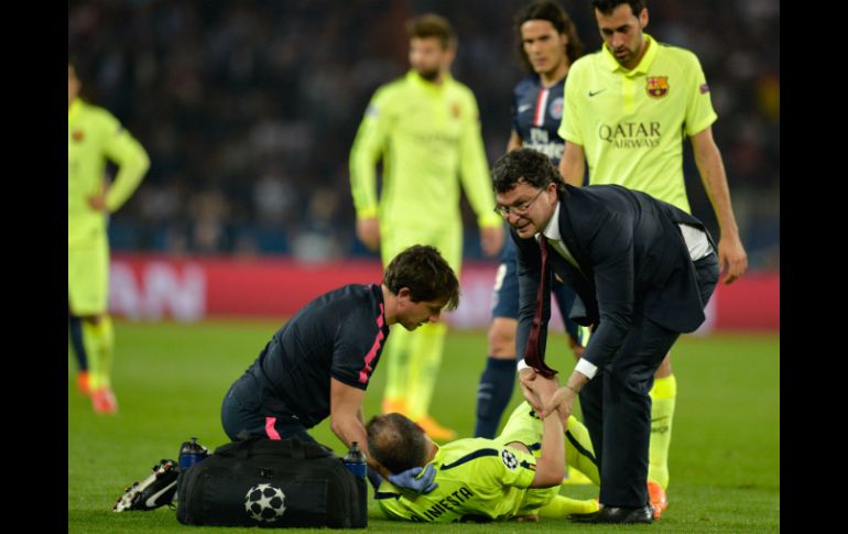 Deportes | El jugador del Barcelona fue sustituido al 52' en el partido contra PSG Andrés Iniesta sufre una fuerte contusión El jugador del Barcelona fue sustituido al 52' en el partido contra PSG Por: AFP 16 de abril de 2015 - 11:29 hs Iniesta no estaría disponible para el partido contra Valencia. AFP / ARCHIVO BARCELONA, ESPAÑA (16/ABR/2015).- El centrocampista del Barcelona Andrés Iniesta, que sufrió un golpe en la espalda el miércoles en la victoria 3-1 ante el París Saint-Germain en cuartos de la Liga de Campeones, sólo sufre "una fuerte contusión", anunció este jueves el club azulgrana. "Según han informado los Servicios Médicos del club, las pruebas realizadas este jueves al jugador del primer equipo Andrés Iniesta han confirmado una fuerte contusión en la articulación sacroilíaca. Posteriormente, el centrocampista ha realizado trabajo específico", señaló el Barcelona. Iniesta fue sustituido en el minuto 52 por Xavi Hernández tras recibir un golpe en la espalda del argentino Javier Pastore. Salió del campo en camilla. El Barcelona, líder del campeonato español, recibe el sábado al Valencia (4º) en la 32ª jornada con la necesidad de ganar ya que sólo tiene 2 puntos de ventaja con el Real Madrid (2º), que juega más tarde con el Málaga (7º) en el Santiago Bernabéu. Temas Futbol Español Futbol Internacional Barcelona Recibe las últimas noticias en tu e-mail Todo lo que necesitas saber para comenzar tu día Registrarse implica aceptar los Términos y Condiciones