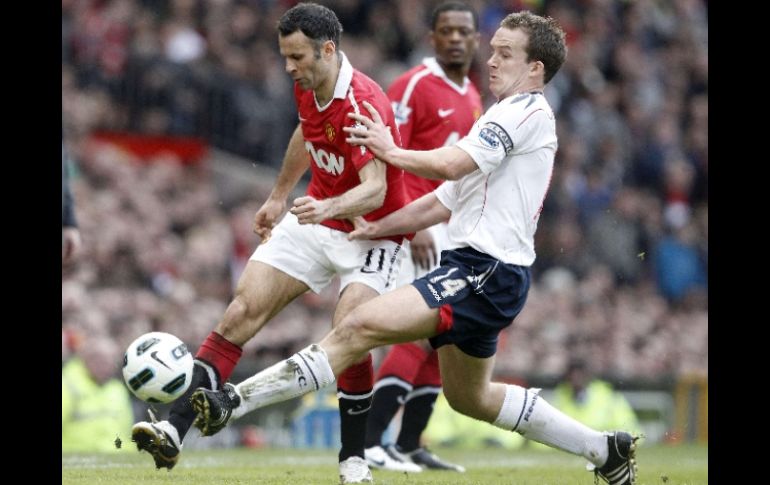 Deportes | Un gol de Berbatov en los minutos finales da la victoria 1-0 al cuadro de Old Trafford Angustiosa victoria del Manchester United Un gol de Berbatov en los minutos finales da la victoria 1-0 al cuadro de Old Trafford Por: EL INFORMADOR 19 de marzo de 2011 - 09:55 hs Ryan Giggs (izq.), del Manchester United, disputa un balón con su contrincante Kevin Davies (der.). REUTERS / LEA EL MINUTO A MINUTO DE ESTE PARTIDOMANCHESTER, INGLATERRA (19/MAR/2011).- Apenas tres minutos antes de cumplirse los 90 minutos reglamentarios del juego, el número nueve del Manchester United aprovechó el rebote de un fuerte tiro de Nani, para anotar el único gol del partido contra el Bolton. El mexicano, Javier 'Chicharito' Hernández, jugó sólo durante la primera mitad del encuentro, pero a pesar de tener varias oportunidades no pudo concretar ninguna para abrir el marcador. En tanto, Sir Alex Fergson, el técnico del cuadro de Old Trafford dio órdenes desde la tribuna, debido a la suspensión de cinco partidos que debe saldar, luego de criticar al árbitro tras el encuentro contra el Chelsea el pasado 5 de marzo. La única tarjeta del partido fue aplicada a Evans, de los 'Red devils' quien salió expulsado al minuto 75 luego de hacer una dura entrada. Con esta victoria el Manchester United suma 63 puntos acumulados en el tablero de la Liga Premier de Inglaterra. Temas Liga Premier Futbol Internacional Futbol Inglés Manchester United Lee También ¿Dónde ver EN VIVO el partido de J13 Toluca vs Querétaro? ¿Quién ganará el partido entre San Luis y Atlas? Esto dice la IA Liga MX: Horarios y canales de los partidos del 17 de octubre El “malabarista” de la Casa Blanca Recibe las últimas noticias en tu e-mail Todo lo que necesitas saber para comenzar tu día Registrarse implica aceptar los Términos y Condiciones