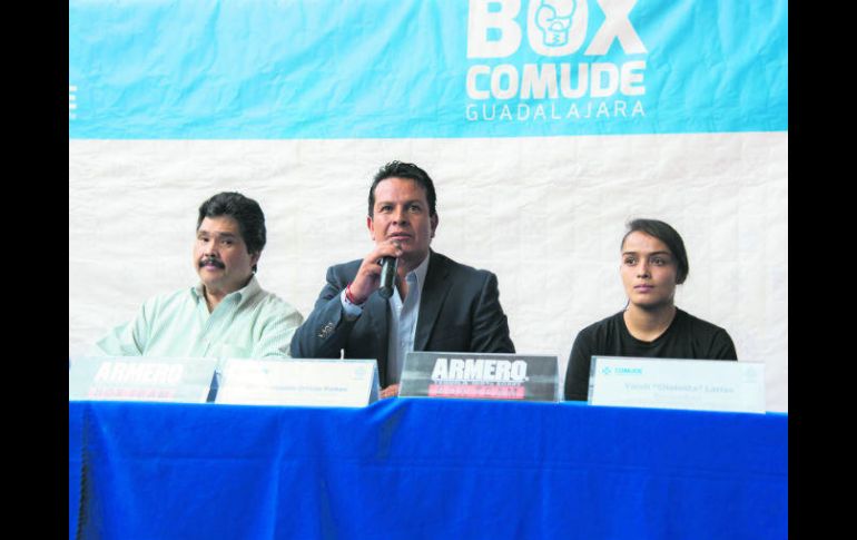 GUADALAJARA, JALISCO (25/JUL/2017).- Ante la presencia de medios de comunicación y teniendo como sede la explanada del Mercado Corona, ayer el Consejo Municipal del Deporte (Comude) de Guadalajara, junto a la Promotora RG Boxing, presentaron la que será la séptima Función Profesional de Box, que se realizará el próximo viernes 28 de julio a partir de las 18:00 horas en el Gimnasio Multiusos del Parque San Rafael.En esta ocasión, la cartelera estará formada por 13 peleas, siendo la estelar de la noche la que sostendrán Yareli “Chololita” Larios, hija del ex campeón mundial Óscar “Chololo” Larios, y Guadalupe “La Pantera” Lincer. En tanto que Ricardo “Moicano” Iñiguez y David “Rino” Alegría, medirán fuerzas en el combate coestelar.Sobre su participación las carteleras de box del Comude Guadalajara, la “Chololita” dijo estar preparada para llevarse la victoria a casa, asimismo mostró su agradecimiento por el apoyo y las oportunidades que se le han brindado.“Nos hemos preparado bien, estamos listos para afrontar el reto que se venga, estamos listos para salir adelante el próximo viernes. Estoy agradecida con el apoyo y el empuje que le están dando a mi carrera”, señaló la joven pugilista.