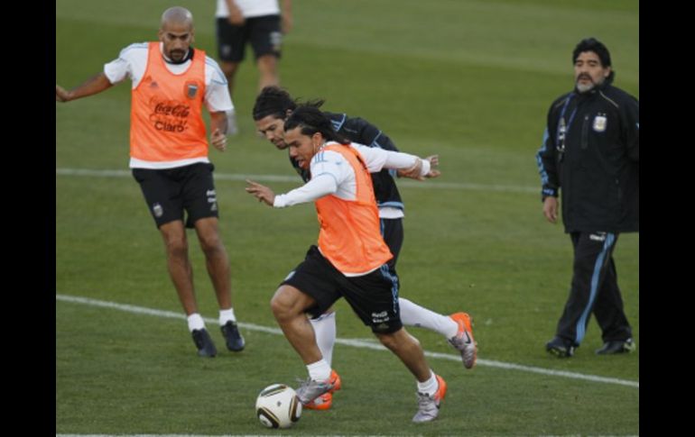 Deportes | Argentina debuta el sabado 12 de junio ante Nigeria Argentina entrena a puertas abiertas La albiceleste deja ingresar a cinco mil aficionados y la práctica fue toda una fiesta en el campamento de los sudamericanos Por: AP 6 de junio de 2010 - 14:33 hs Diego Maradona, Juan Sebastián Verón, Carlos Tevez y Ariel Garcé, durante el entrenamiento. AP / PRETORIA, SUDÁFRICA (6/JUNIO/2010).- Una cinco mil personas le pusieron fervor el domingo a una práctica de Argentina, la primera a puertas abiertas en Sudáfrica, con ovaciones y aplausos para todos, con Diego Maradona a la cabeza en homenaje a su pasado. Contentos y felices. Así quedaron todos: el público porque pudo ver en acción a unos de los 32 equipos del Mundial que arrancará el viernes, y los jugadores porque el partido entre presuntos titulares y suplentes entremezclados terminó 3-3 en solo 35 minutos de juego. Carlos Tevez, Gonzalo Higuaín y Angel Di María marcaron para uno de los equipos, con mayoría de titulares con camiseta naranja, mientras que Ariel Garcé, Diego Milito y Mario Bolatti lo hicieron para los reservistas vestidos de azul. "Maradooo... Maradooo", vibró el público cuando el ex Pibe de Oro hizo su aparición en una de las canchas de la Universidad de Pretoria, a paso lento y fumando un habano. "Olé, Olé, Olé, Diego... Diego", fue el aliento que partió luego desde las tribunas, con banderas argentinas y algunas sudafricanas. El capitán del seleccionado argentino campeón mundial en 1986 en México saludó y lanzó besos al aire. Ante tanto entusiasmo que despertó Maradona, Martín Demichelis dijo que "Diego nos descomprime un poco, porque él genera muchísimo". "Y además también nos motiva con sus arengas", agregó el defensor del Bayern Munich. También hubo ovaciones para Lionel Messi, el astro del Barcelona de España, quien entró acompañado de su compañero de habitación, Juan Sebastián Verón, de Estudiantes de Argentina. Uno de los que ovacionó a Messi fue Jacinto, de 18 años, quien se vino de su Mozambique natal tan sólo para verlo a él. "Messi es una maravilla, vino del cielo a jugar al balón", dijo Jacinto en un buen español porque vivió siete años en Sevilla, y envuelto en una camiseta del Barcelona con el número 10 en la espalda. Messi se lució en lo que fue un partido muy liviano, casi sin exigencias, y que solo sirvió para la presentación de Argentina en la sociedad africana. "Buena, fiera", fue la frase de Maradona cuando se dirigía a algunos de los suyos que hacía una buena jugada. "Bien, bien...vamos...vamos", fue otra de sus variantes de aliento, alejada de las rutinas tácticas. Mientras adentro de la Universidad todo era una fiesta, afuera fue un caos, porque cerca de 500 personas no pudieron entrar debido a que las puertas se cerraron antes de tiempo. "No me importa que no pueda estar adentro", se consoló Augusto, de 30 años, disfrazado de elefante. "Gasté casi seis mil dólares por estar acá, perdí a mi novia y estoy a punto de perder mi trabajo" en una oficina. "El sábado estaré en la cancha y en la final estaré al lado de Argentina", agregó Augusto, quien además vendió su auto para viajar a Sudáfrica. Argentina debutará el sábado en Johannesburgo ante Nigeria, por el Grupo B que completan Corea del Sur y Grecia. Diego Pozo, arquero suplente de Argentina, dijo que "estamos todos mentalizados para este partido. "Esta es una Selección que tiene al mejor del mundo", agregó en alusión a Messi. "Ver a estos monstruos es grande para la gente y para uno mismo", dijo el arquero de Colón de Argentina. Temas FIFA Mundial de Sudáfrica 2010 Selección de Argentina Lee También Mundial Sub-20: Chivas y Juárez se disputan el futuro del juvenil Diego Ochoa Aficionado le pide a Javier Aguirre que Gilberto Mora no pruebe el alcohol | VIDEO ¿Quiénes son los jugadores a seguir de Argentina Sub-20 de cara al duelo ante México? A aprovechar la oportunidad en estos juegos de preparación: Marcel Ruiz Recibe las últimas noticias en tu e-mail Todo lo que necesitas saber para comenzar tu día Registrarse implica aceptar los Términos y Condiciones