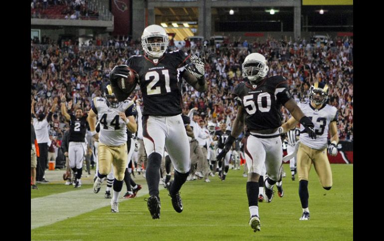 Deportes | Los Cardenales vencen 19-13 a los Carneros de San Luis Arizona gana en tiempo extra Los Cardenales vencen 19-13 a los Carneros de San Luis Por: AP 6 de noviembre de 2011 - 18:34 hs Peterson celebra la anotación con la que ganaron los Cardenales. AP / GLENDALE, ARIZONA (06/NOV/2011).- El novato Patrick Peterson devolvió 99 yardas una patada para un touchdown en el tiempo extra que le dio el domingo a los Cardenales de Arizona una victoria inesperada, por 19-13, ante los Carneros de San Luis. Peterson, cuyo castigo por interferencia en pase pareció poner poco antes a los Carneros (1-7) en posición de un gol de campo decisivo, capturó el balón en la yarda uno. Eludió y se libró de tacleadores en las siguientes 30 yardas y luego corrió solo, dando zancadas en las últimas yardas para celebrar su tercer touchdown con regreso de patada en la campaña. Con el triunfo, Arizona (2-6) salió de seis derrotas consecutivas. Calais Campbell de Arizona le bloqueó a Josh Brown un intento de gol de campo de 42 yardas, con lo que forzó el tiempo de prórroga. Temas NFL Futbol Americano Cardenales de Arizona Carneros de Los Ángeles Lee También Los Chiefs juegan como en antaño Futbol hoy 13 de octubre de 2025: ¿Dónde ver los partidos en vivo? Así se jugarán las Semifinales del Mundial Sub-20 El Tricolor entrenó en Guadalajara tras la humillación ante Colombia Recibe las últimas noticias en tu e-mail Todo lo que necesitas saber para comenzar tu día Registrarse implica aceptar los Términos y Condiciones