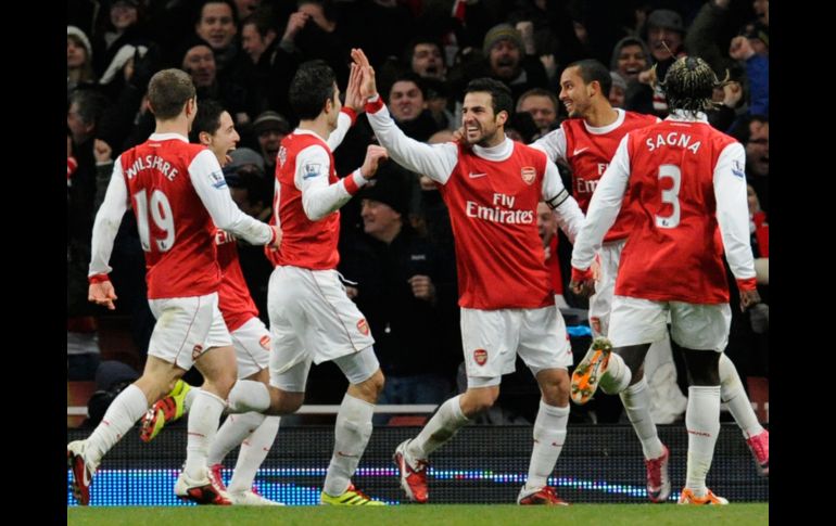 Deportes | Con este resultado, los Gunners se acercan al líder Manchester United Arsenal vence a Chelsea Con este resultado, los Gunners se acercan al líder Manchester United Por: AP 27 de diciembre de 2010 - 16:15 hs El español Cesc Fábregas festeja con sus compañeros el gol marcado al Chelsea. AP / LONDRES, INGLATERRA (27/DIC/2010).- Arsenal superó 3-1 el lunes al Chelsea, campeón defensor de la Liga Premier, e intensificó la lucha por el título con el líder Manchester United. Alex Song, Cesc Fabregas y Theo Walcott convirtieron por Arsenal en un lapso de 10 minutos interrumpido por el medio tiempo. Aunque Branislav Ivanovic descontó de cabeza a los 57 minutos, Chelsea no pudo recuperarse ante el equipo que había vencido en sus últimos cinco encuentros en cualquier torneo. La pérdida refleja el problema que acosa al técnico Carlo Ancelotti, cuyo equipo se apuntó cinco victorias sucesivas en la temporada, pero lleva sin ganar en la liga desde el 10 de noviembre. Arsenal, que no le había anotado al Chelsea desde mayo del 2009, consiguió su pasada victoria sobre los Blues en noviembre del 2008. Temas Liga Premier Futbol Internacional Futbol Inglés Arsenal Chelsea Recibe las últimas noticias en tu e-mail Todo lo que necesitas saber para comenzar tu día Registrarse implica aceptar los Términos y Condiciones