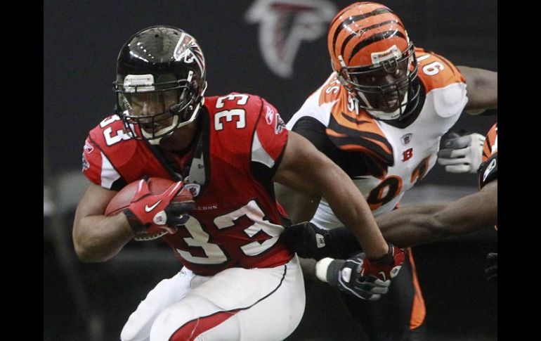 Deportes | Los Halcones supieron mantener su ventaja y ganan a Cincinnati por 39-32 Atlanta doma a los Bengalíes Los Halcones supieron mantener su ventaja y ganan a Cincinnati por 39-32 Por: AP 24 de octubre de 2010 - 15:31 hs Los Halcones de Atlanta Michael Turner (iz) son perseguidos por el defensor de Cincinnati Robert Geathers (der). AP / ATLANTA, GEORGIA (24/OCT/2010).- Roddy White tuvo el domingo un día espectacular para Atlanta: atrapó 11 pases para 201 yardas y lideró a los Halcones hacia una increíble victoria sobre los Bengalíes de Cincinnati por marcador de 39-32. Los Halcones (5-2) tenían ventaja de 24-3 al medio tiempo, pero la perdieron con dos entregas de balón y por la embestida de Cincinnati (2-4), que les anotó 22 puntos en el tercer cuarto. White puso a los Halcones al frente con su segundo touchdown, una recepción de 11 yardas al comienzo del cuarto período. Inmediatamente atrapó otro balón para conversión de dos puntos y así Atlanta tomó la delantera por 32-25. Luego de un balón suelto de Cedric Benson, Michael Turner anotó con una carrera de tres yardas para darle una ventaja de dos anotaciones a los Halcones. Chad Ochocinco acercó a los Bengalíes atrapando un pase de ocho yardas para touchdown, e intentaron hacer más daño con una patada corta, pero los de Atlanta recuperaron el balón. Temas NFL Futbol Americano Bengalíes de Cincinnati Halcones de Atlanta Recibe las últimas noticias en tu e-mail Todo lo que necesitas saber para comenzar tu día Registrarse implica aceptar los Términos y Condiciones