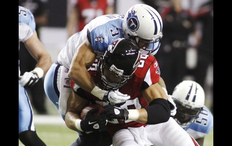 Deportes | Vence a Titanes de Tenesí por 23-17, logra 147 yardas Atlanta totaliza mejor marca de la temporada Vence a Titanes de Tenesí por 23-17, logra 147 yardas Por: AP 20 de noviembre de 2011 - 17:50 hs El jugador de Titanes Tony González (D) lucha con Cortland Finnegan de Tenesí durante la primera mitad del encuentro. REUTERS / ATLANTA, GEORGIA (20/NOV/2011).- Roddy White logró el domingo siete recepciones para totalizar su mejor marca de la temporada con 147 yardas y Jonathan Babineaux encabezó la defensa de los Halcones de Atlanta para vencer a los Titanes de Tenesí por 23-17. Los Halcones (6-4) se recuperaron tras perder en tiempo extra ante Nueva Orléans, pero no fue fácil. Jake Locker reemplazó al lesionado Matt Hasselbeck y consiguió un par de pases de touchdown a Nate Washington para que los Titans (5-5) se mantuvieran en el partido. Atlanta se puso adelante por un pase de touchdown de 17 yardas de Matt Ryan a Tony Gonzalez y ganaba 20-3 en el tercer parcial luego que Michael Turner anotó en una carrera de cuatro yardas. Hasselbeck salió con una distensión en el codo y Locker estuvo cerca de encabezar una remontada inesperada. El novato lanzó para 140 yardas tras entrar al final del tercer cuarto. Temas NFL Futbol Americano Titanes de Tennessee Halcones de Atlanta Lee También La generación dorada del 2005 se apaga con el retiro de Héctor Moreno Cruz Azul vs América • Momentos Destacados • Jornada 13 • Apertura 2025 Chivas vs Mazatlán • Momentos Destacados • Jornada 13 • Apertura 2025 México cae ante Corea del Norte en su debut del Mundial Sub-17 Femenil Recibe las últimas noticias en tu e-mail Todo lo que necesitas saber para comenzar tu día Registrarse implica aceptar los Términos y Condiciones