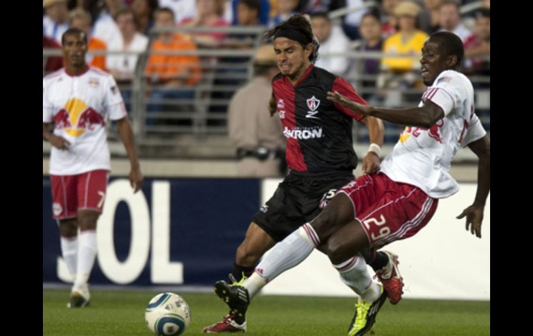 Deportes | Rafa Márquez anota el penalti que empareja el marcador al minuto 87 Atlas empata 1-1 con Red Bulls en partido amistoso Rafa Márquez anota el penalti que empareja el marcador al minuto 87 Por: EL INFORMADOR 8 de marzo de 2011 - 22:49 hs Salou Ibrahim lucha con Gerardo Flores por la posesión del balón en el encuentro que empataron 1-1 Atlas y Red Bulls. EFE / GLENDALE, ESTADOS UNIDOS (08/MAR/2011).- Con miras al 'clásico tapatío' del Torneo Clausura 2011 del futbol mexicano, Rojinegros del Atlas y Red Bulls de Nueva York de la MLS empataron 1-1 en duelo jugado en el estadio de la Universidad de Phoenix. Rojinegros se había puesto al frente al minuto 77 con el autogol del defensa estonio Joel Lindpere, mientras por el conjunto neoyorquino emparejó los cartones el mexicano Rafael Márquez, por la vía del penalti al 87. El cuadro atlista tuvo muy poca llegada y bien pudo llevarse una goleada, pero la buena actuación de su arquero Francisco Canales y la aplicación de su defensa evitaron que el rival les hiciera daño, al ser dueño del partido hasta la anotación. Tan sólo el delantero Salou Ibrahim tuvo un par de llegadas claras sobre la meta atlista, pero le faltó tranquilidad para culminarlas de buena manera cuando ya se cantaba el gol en las tribunas. Sin embargo, cuando Nueva York más atacaba, el recién ingresado Edgar Pacheco ingresó por derecha y sacó tiro centro que Lindpere desvió para cambiarle la trayectoria al balón y vencer a su arquero para el 1-0. Ya en los albores del partido, al minuto 87, el árbitro del encuentro decretó pena máxima por una falta dentro del área visitante sobre Lindpere que Rafael Márquez cobró a la izquierda de Canales para hacer el 1-1 final en este duelo amistoso. Temas Atlas Partidos amistosos Red Bull Recibe las últimas noticias en tu e-mail Todo lo que necesitas saber para comenzar tu día Registrarse implica aceptar los Términos y Condiciones