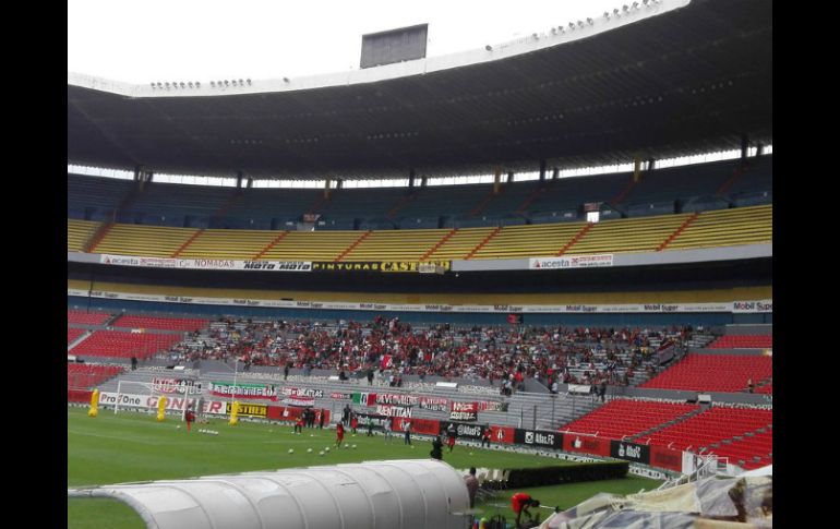 GUADALAJARA, JALISCO (17/AGO/2016).- La mañana de este miércoles, los Rojinegros del Atlas llevaron a cabo su entrenamiento en el Estadio Jalisco, y como un detalle especial para su afición de cara al Clásico Tapatío del próximo sábado, lo hicieron a puerta abierta, con acceso a aficionados, sin embargo los grupos de animación fueron los que acudieron al llamado en buena cantidad, mil 300 fanáticos, con banderas, mantas, pero sobre todo con porras, gritos y saltos, apoyaron a su equipo, mientras hacían un interescuadras.En la práctica, el director técnico, el "Profe" José Guadalupe Cruz, ordenó un parado táctico, no sin antes ejercicios de calentamiento. Como cuadro titular, el estratega mandó a lo que fue su último equipo, el que derrotó como local a Puebla la semana pasada en el juego del Centenario, es decir, con Óscar Ustari, José Madueña, Jaine Barreiro, Leiton Jiménez, Luis Reyes, Flavio Santos, Rafael Márquez, Luis Robles, Cándido Ramírez, Martín Barragán y Jefferson Duque.Hacia el final de la práctica, algunos jugadores se acercaron a la reja, atrás de la portería norte, para saludar a los aficionados, como fue el caso del portero suplente Miguel Fraga, sin embargo la pertinaz lluvia que cayó evitó que los otros jugadores acudieran con sus aficionados. No obstante, se quedaron hasta que los jugadores salieran por sus vehículos para poder pedir una fotografía o un autógrafo a sus ídolos.EL INFORMADOR / JAVIER ROBLES