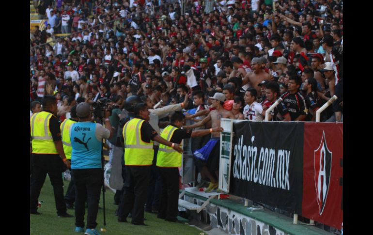 Deportes | La directiva ya está asesorada por abogados para hacer valer la Ley Atlas pide cárcel para violentos La directiva ya está asesorada por abogados para hacer valer la Ley Por: EL INFORMADOR 20 de mayo de 2015 - 13:38 hs ZAPOPAN, JALISCO (20/MAY/2015).- Los actos violentos suscitados en el Clásico Tapatío del domingo pasado, dentro de los cuartos de final del Clausura 2015, en donde aficionados del Atlas se saltaron al terreno de juego a intentar agredir al técnico Tomás Boy y a algunos jugadores, así como agresiones a la policía desde la tribuna, ya tuvieron eco en la directiva rojinegra, quien ya fríamente y con 48 horas de reflexión, el presidente Gustavo Guzmán pide cárcel para los involucrados. La directiva rojinegra, comandada por el propio Guzmán, ya se encuentran asesorados por un grupo de abogados, así como del poder judicial y del poder ejecutivo, para poder hacer valer la Ley de Cultura Física y Deportes, recientemente promulgada. "Es vergonzoso, es penoso, es triste, pero con estos días después del incidente, cuando menos en mi persona, han sido ocupados estos temas de buscar castigo a esos nueve o 10 personas que la policía logró arrestar, estuvimos muy de cerca con un equipo importante de abogados penalistas, buscando la forma en que éstos sujetos no salgan fácilmente de la cárcel, recibimos mucha ayuda en general del poder ejecutivo, básicamente de los fiscales, afortunadamente convencimos a las autoridades para que aplicaran la nueva ley de la Cultura Física y Deportes, logramos que el estado la acogiera y logramos que se levantaran cargos", dijo este medio día Guzmán en conferencia de prensa. El mandamás del Atlas y representante de Grupo Salinas en la institución rojinegra dijo que lo único que le interesa a él y al Club, es que los aficionados violentos "se pudran en la cárcel", haciendo valer la ley. "El Club sale seriamente dañado, las multas y las puertas cerradas afectan nuestras finanzas, ya fueron consignados, ya pasaron al poder judicial, ya está en manos del Tribunal y exhorto al presidente del Tribunal y al Juez que vaya a acoger el caso, que apliquen la ley. Lo que más nos interesa es que se pudran en la cárcel. Yo no quiero acusar a una u otra barra, la gente está enojada con lo que pasó, hay gente que no quiere ir al estadio ante la posibilidad de encontrarse algo así", dijo el presidente. Atlas fue multado por el Ayuntamiento por un monto de 260 mil pesos y la clausura indefinida del Estadio Jalisco, mientras que por parte de la Federación Mexicana de Futbol y la Comisión Disciplinaria, se multó con siete mil días de salario mínimo y dos partidos de veto para el inmueble, a pagar las dos primeras fechas del próximo torneo donde los Zorros jueguen de local. EL INFORMADOR / JAVIER ROBLES Temas Atlas Futbol Mexicano Detenidos en Jalisco Liga MX Recibe las últimas noticias en tu e-mail Todo lo que necesitas saber para comenzar tu día Registrarse implica aceptar los Términos y Condiciones