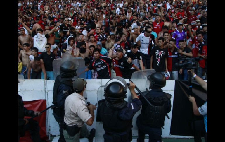 Deportes | La 'Barra 51' no tendrá acceso por tiempo indefinido, informa presidente de los Zorros Atlas veta a su grupo de animación El presidente de los Zorros informa que la 'Barra 51' no tendrá acceso por tiempo indefinido Por: NTX 17 de mayo de 2015 - 20:45 hs Integrantes de la 'Barra 51' invadieron la cancha del Estadio Jalisco y se enfrentaron con la policía. EL INFORMADOR / R. Tamayo GUADALAJARA, JALISCO (17/MAY/2015).- Gustavo Guzmán, presidente de Atlas, informó que se le negará el acceso a la "Barra 51", luego que algunos de sus integrantes invadieron la cancha del estadio Jalisco y se enfrentaron con la policía, durante el partido de vuelta de cuartos de final del Torneo Clausura 2015 ante Chivas. "Las barras se eliminan indefinidamente, las barras no son necesarias", señaló el dirigente en conferencia de prensa tras la derrota que sufrió la Furia Rojinegra 1-4 frente a Chivas, en la vuelta de la ronda de los ocho mejores. Señaló que tomarán cartas en el asunto, con aquellos que invadieron la cancha y con los que se enfrentaron a la policía, lo cual generó la suspensión del juego por más de 15 minutos. "Vamos a meter mano dura, pondremos las denuncias necesarias para que estos vándalos tengan un castigo ejemplar", estableció. Reconoció que fue justo el triunfo que logró el Rebaño Sagrado, y que aunque no hubiera sido así, nunca se justifican las agresiones. "Nos ganaron de calle, pero lo otro que pasó (la violencia) es vergonzoso, por ello tenemos que reunirnos para encontrar una solución. La violencia es de pocos y muchos la pagamos", sentenció. Temas Chivas Atlas Futbol Mexicano Clásico Tapatío Estadio Jalisco Clausura 2015 Liguilla Clausura 2015 Lee También Qatar estará en el Mundial 2026: lista de las selecciones que ya tienen boleto Trabajadores del SAT se manifiestan en Jalisco FOTOGALERÍA: Aficionados alientan antes del partido contra Ecuador en Guadalajara Maiceros toman carreteras y autopistas en Jalisco Recibe las últimas noticias en tu e-mail Todo lo que necesitas saber para comenzar tu día Registrarse implica aceptar los Términos y Condiciones